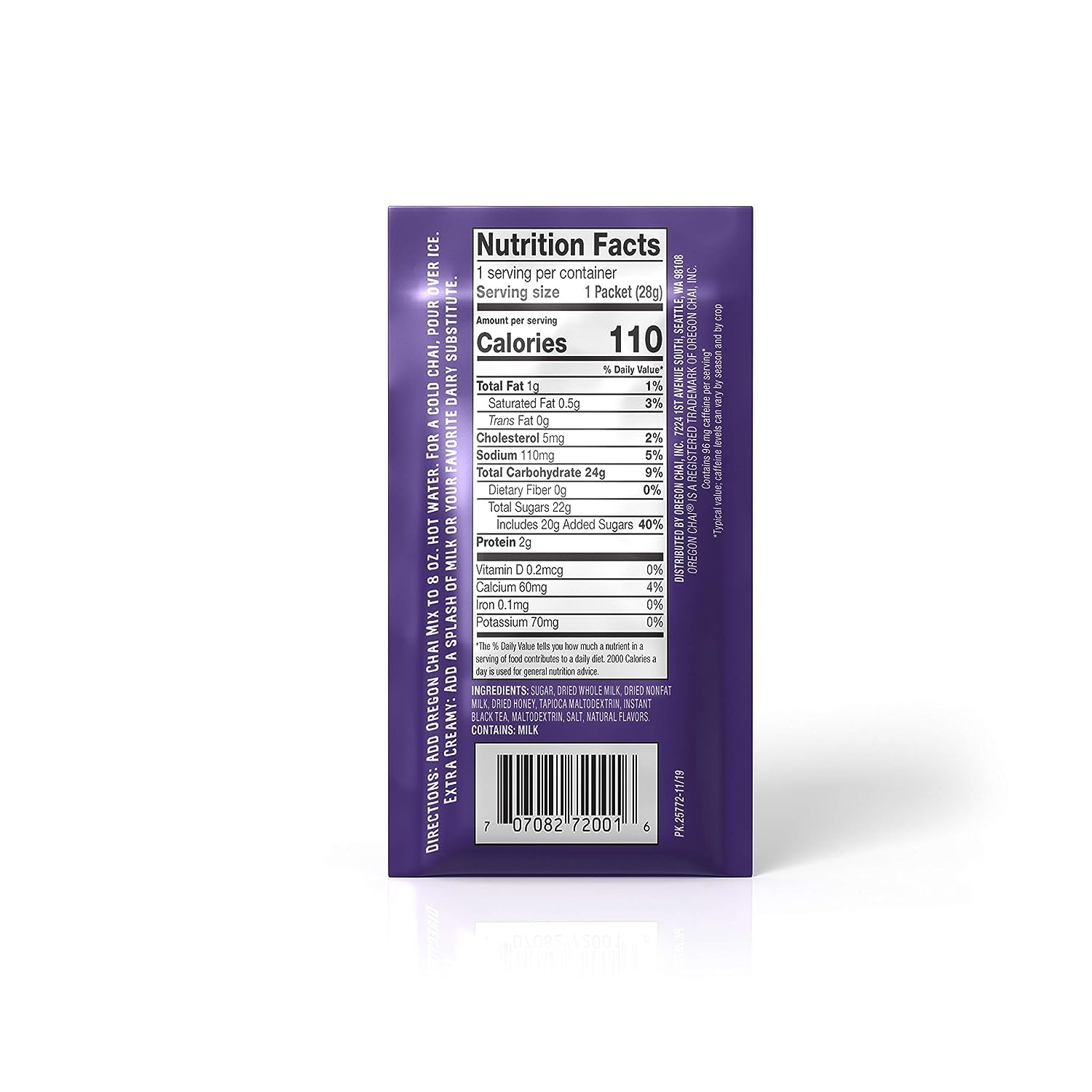 - Oregon Chai Vanilla Dry Chai Latte Mix: Enjoy a chai tea latte now in a grab-and-go packet that you can pop in your bag and take anywhere. With Oregon Chai Tea Latte Powdered Mix packets you can enjoy chai any time, any place