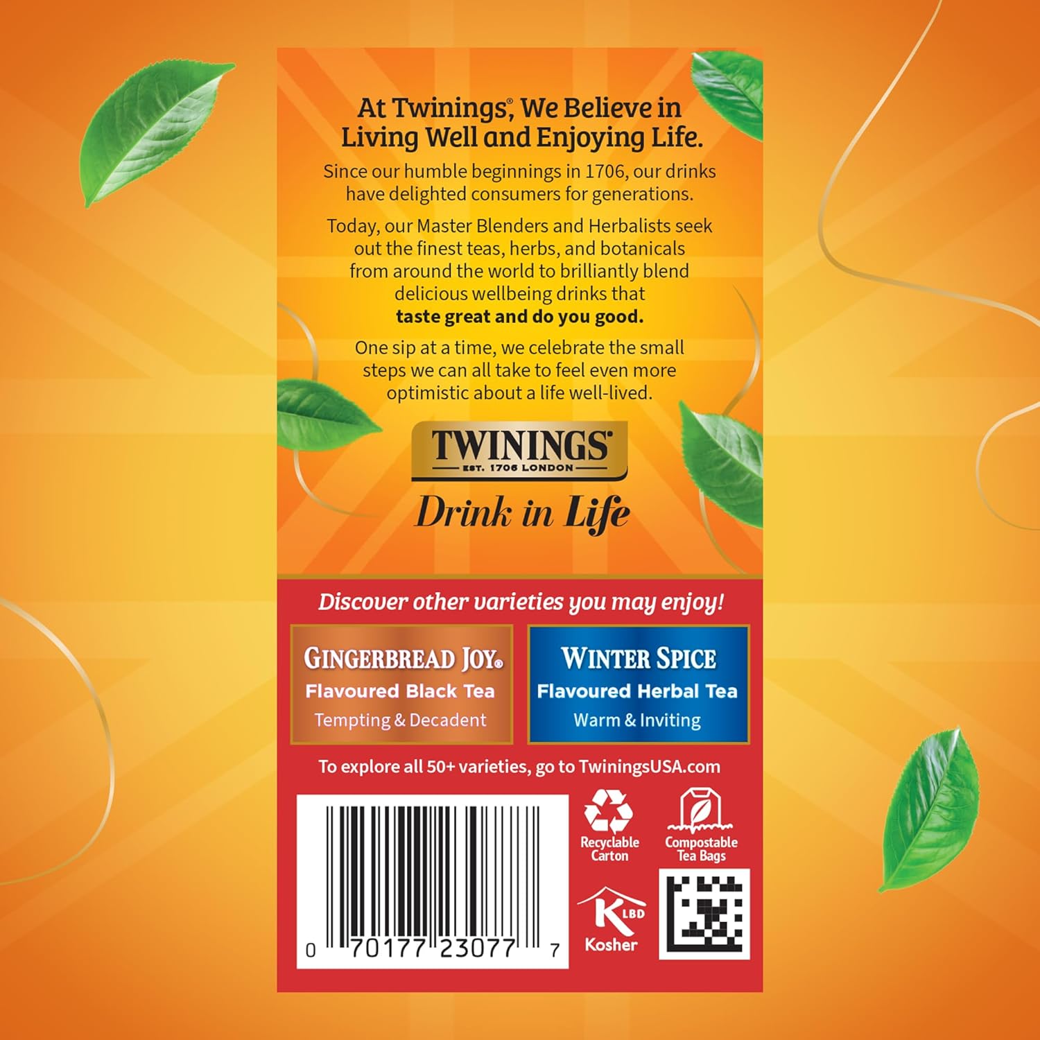 - TIS' THE SEASON: Twinings is delighted to offer this limited edition winter tea that celebrates the joy and spirit of the holiday season; Great stocking stuffer for the tea lover in your life; 20 Count, Pack of 6