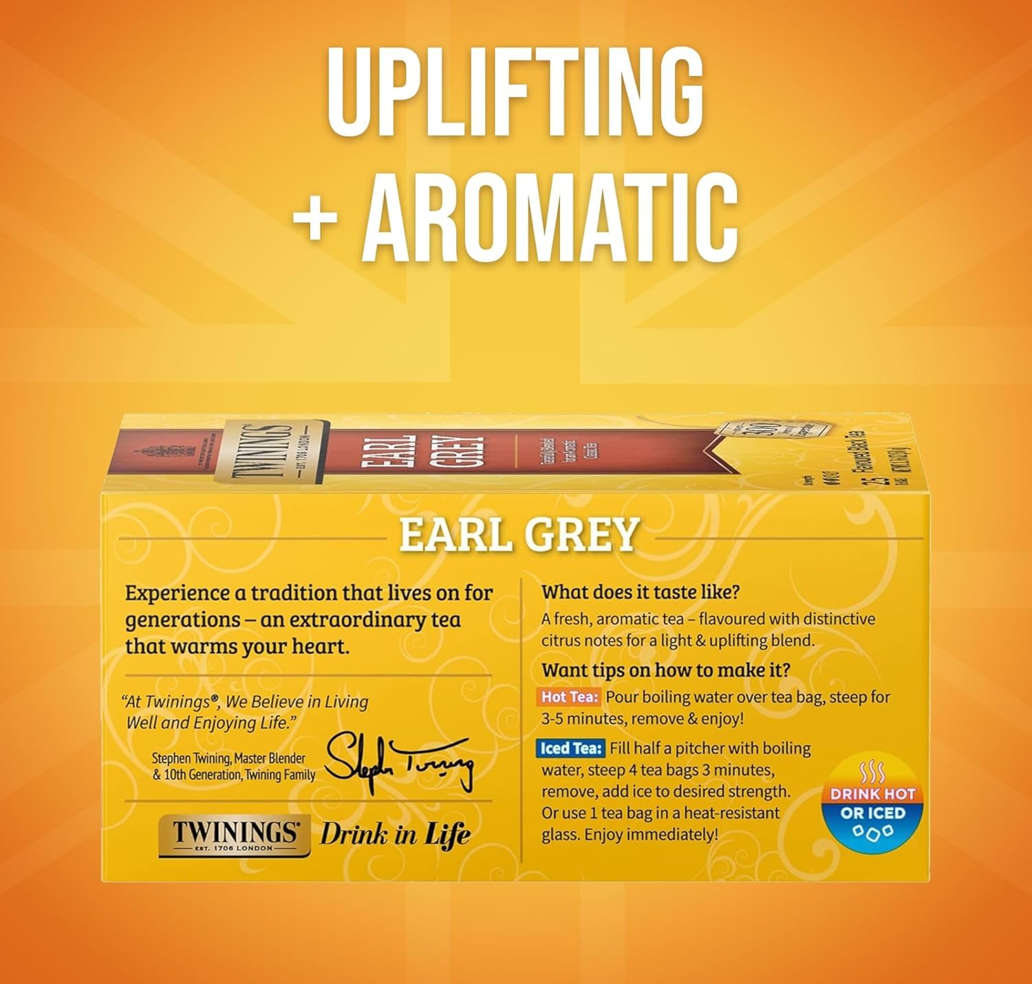 Twinings Earl Grey Black Tea Individually Wrapped Bags, 25 Count (Pack of 6), Flavoured with Citrus and Bergamot, Caffeinated, Enjoy Hot or Iced, 150 Teabags