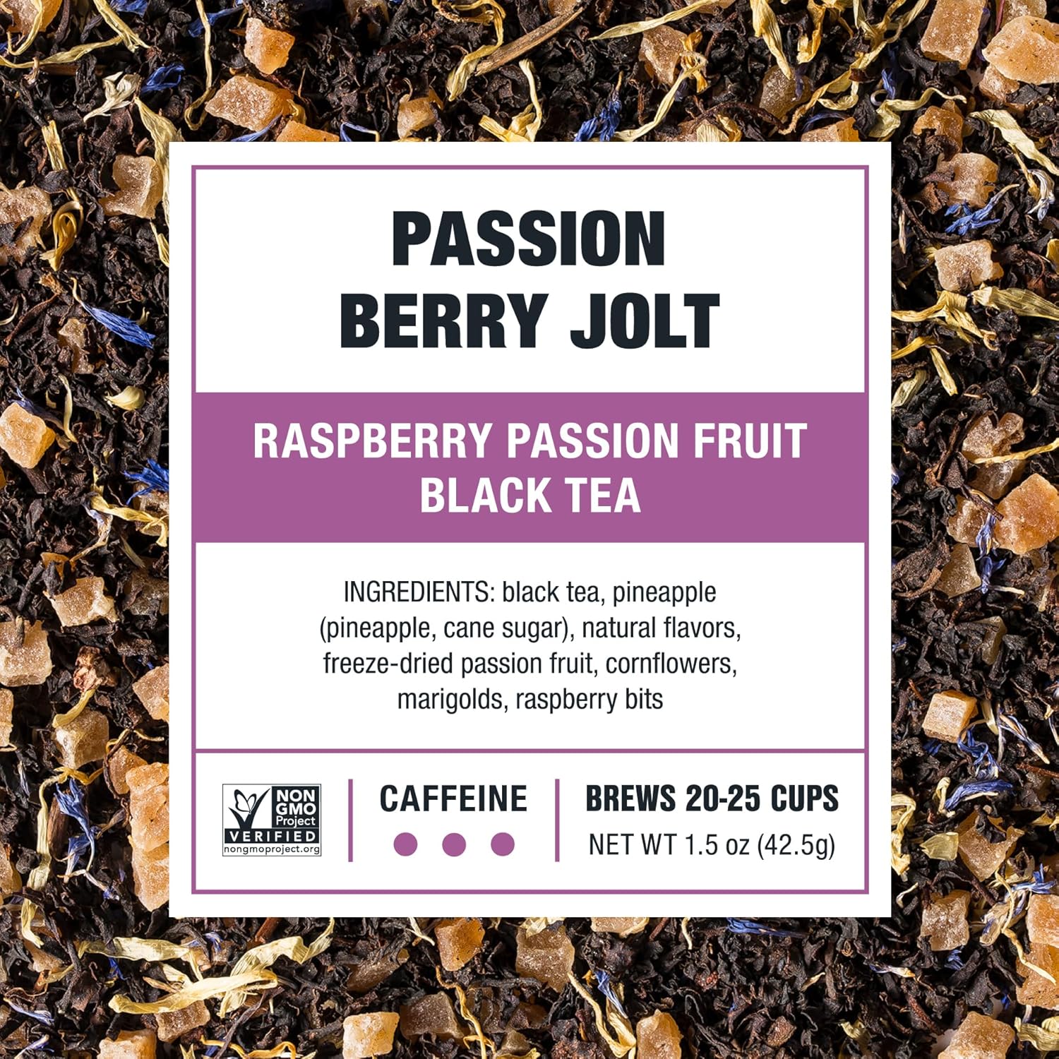 Tiesta Tea - Passion Berry Jolt, Loose Leaf, Raspberry Passion Fruit Black Tea, Premium Caffeinated Black Blend, Make Hot or Iced & Brews Up to 25 Cups, 1.5 Ounce Resealable Pouch