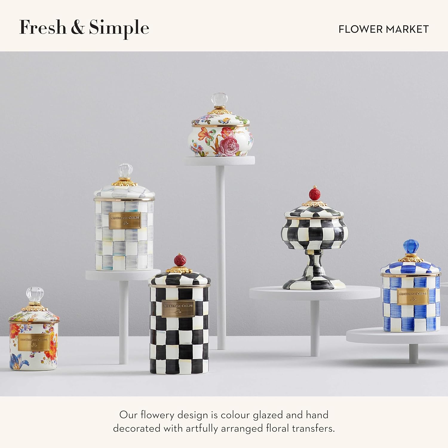 MACKENZIE-CHILDS Enamel Squashed Pot, Cute Enameled Container with Lid, 20 Ounces, White Flower Market