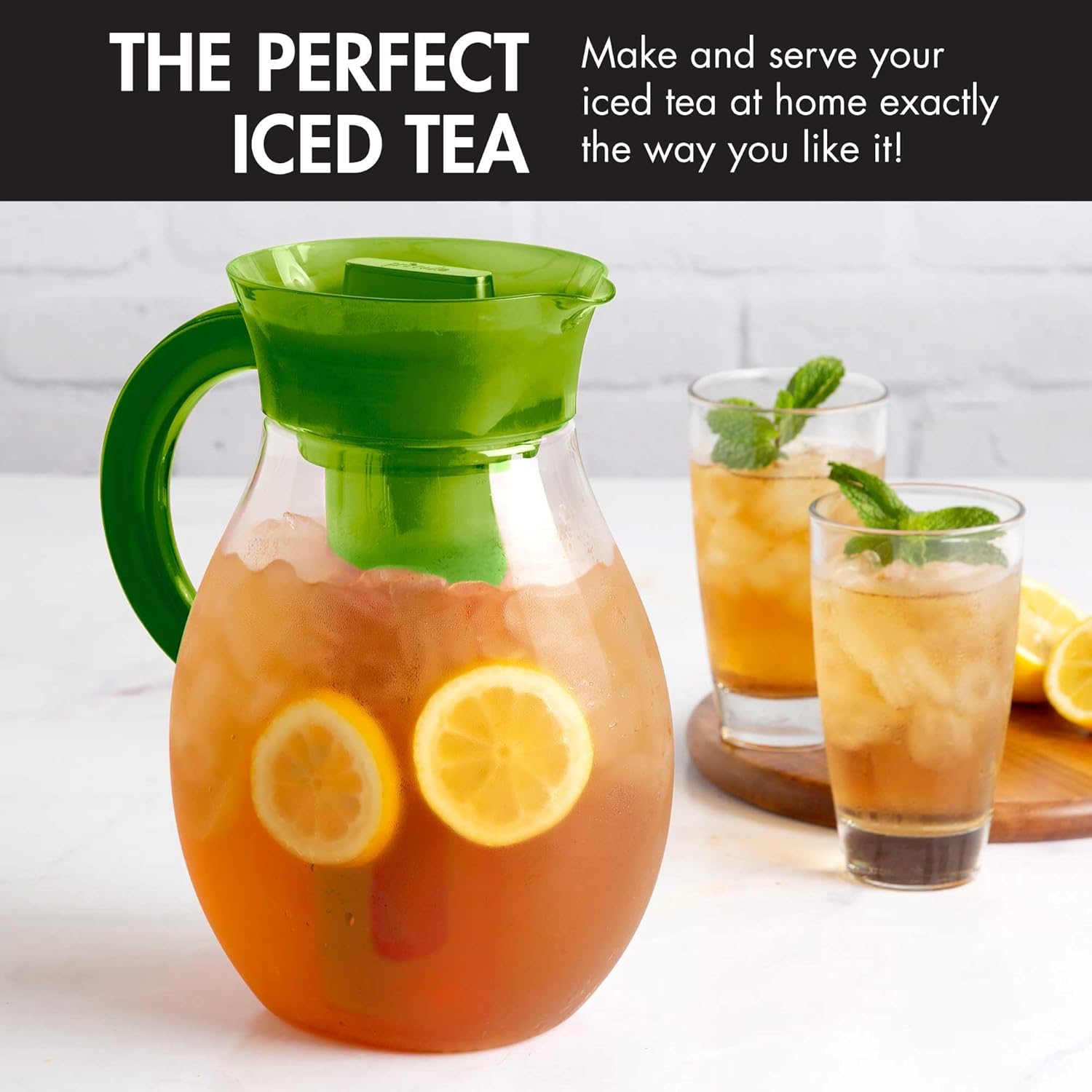 - THE BIG ICED TEA MAKER: Brew, infuse, serve and store all in the same pitcher. Make up to 1 gallon of iced tea in a flash with a few simple steps. Despite its large capacity, it conveniently fits in most refrigerator doors.