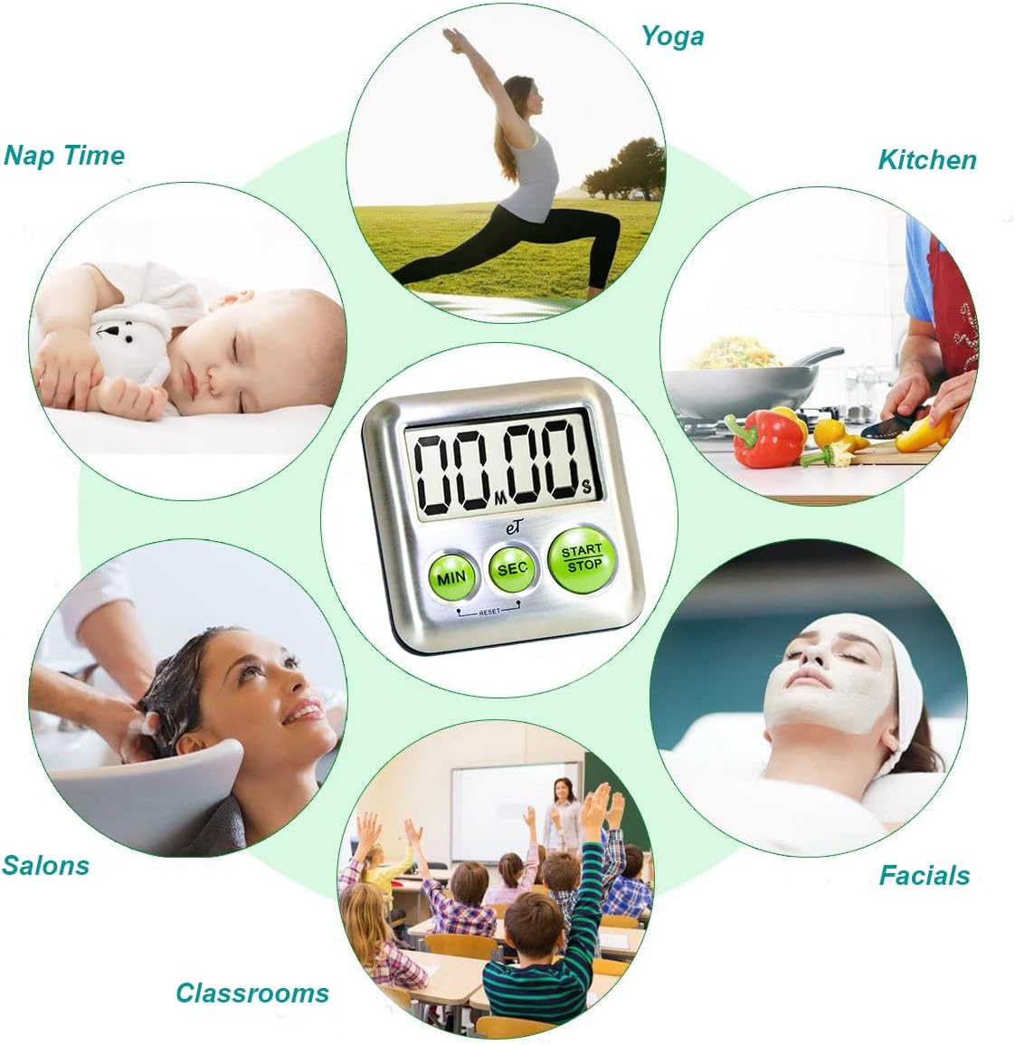 Elegant Digital Kitchen Timer Stainless Steel - Lime - Strong Magnetic Back - Kickstand - Loud Alarm - Large Display - Auto Memory - Auto Shut-Off (Lime)