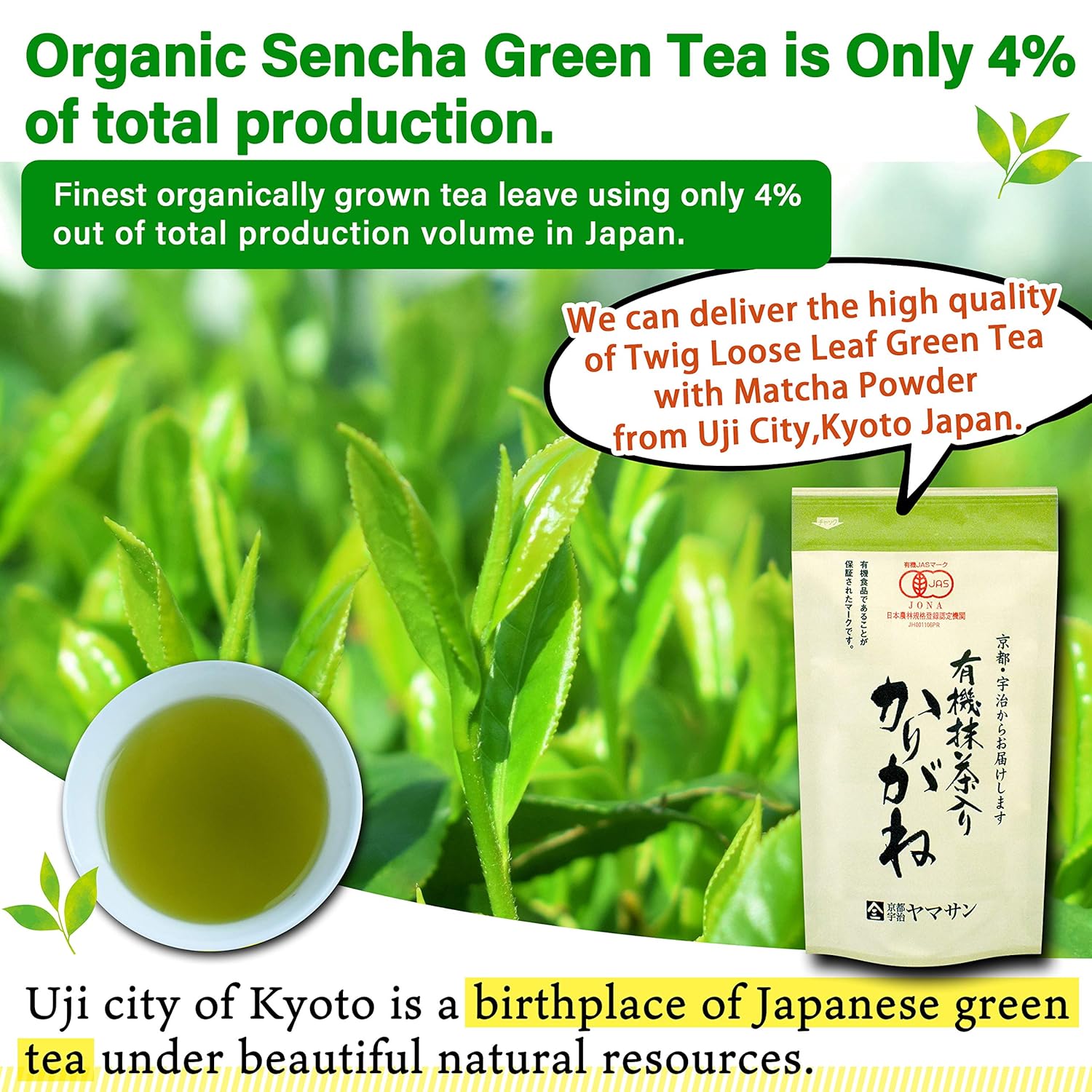 chaganju Organic Green Tea, Kukicha Twig tea with Matcha Green Tea Powder, Japanese Tea -KARIGANE- 100g Bag【YAMASAN】