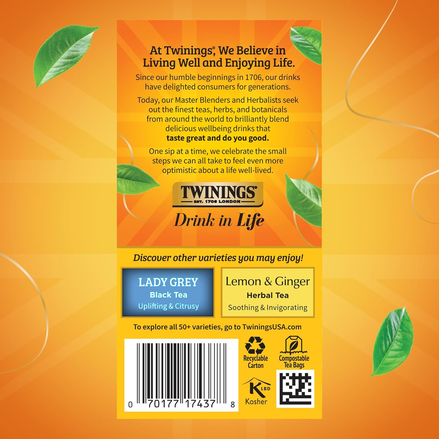 - DRINK IN LIFE: With a signature blend of tradition and innovation, Twinings encourages tea lovers to "Drink In Life" by taking small steps towards feeling good and living well, one sip at a time