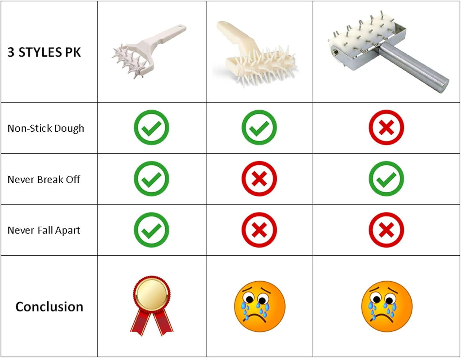 - TIME-SAVER AND LAST FOR YEARS – A dough docker is one of the stranger looking tools that you might find in your kitchen. Dough dockers are used to knock air out of your dough once it has been rolled. The dough docker will create numerous puncture holes in the dough to ensure there are no air gaps in your pizza base once it is cooked. Taking the 10 seconds to dock your dough prior to baking could save you several minutes later when it comes to popping bubbles throughout the baking process.