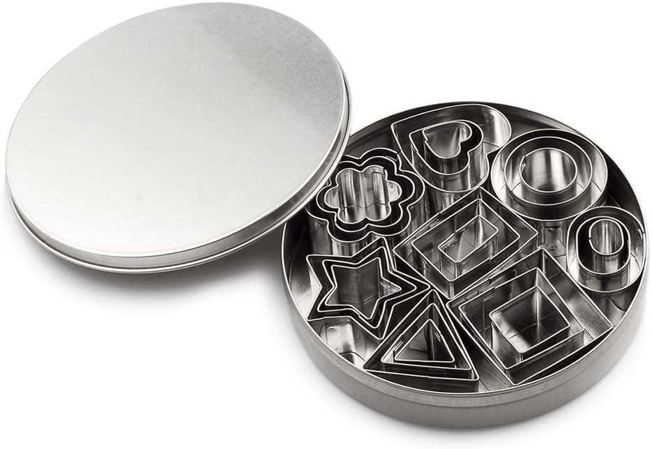 Mini Metal Cookie Cutters Set - 24 Pcs Clay Cutters/Mini Fruit Vegetable Cutters/Star Heart Round Flower Square Mini Cutters - Cookie Cutters for Kids Lunch/Mini Geometric Shapes Cookie Cutters