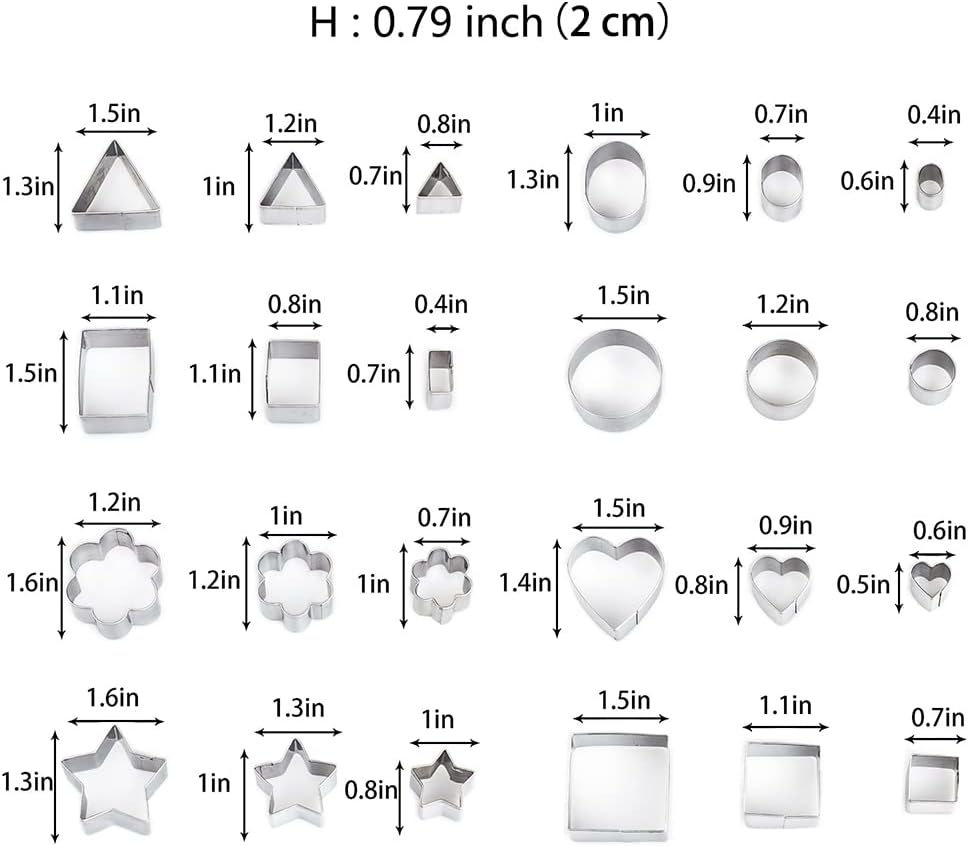 - ◆Various shape mini cutter sizes range from 0.6-1.6 inch/ 1.5 -4 cm, height: 0.79 inch/ 2 cm.