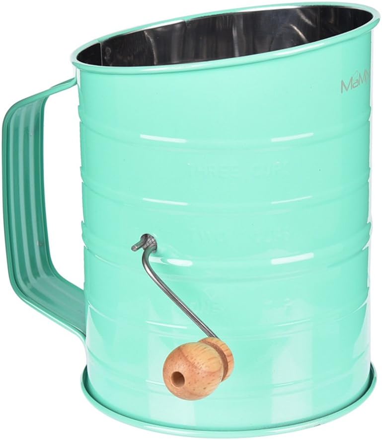 MaMix Stainless Steel Baking Hand Crank Flour Sifter with 2 Wire Agitator 3 Cup