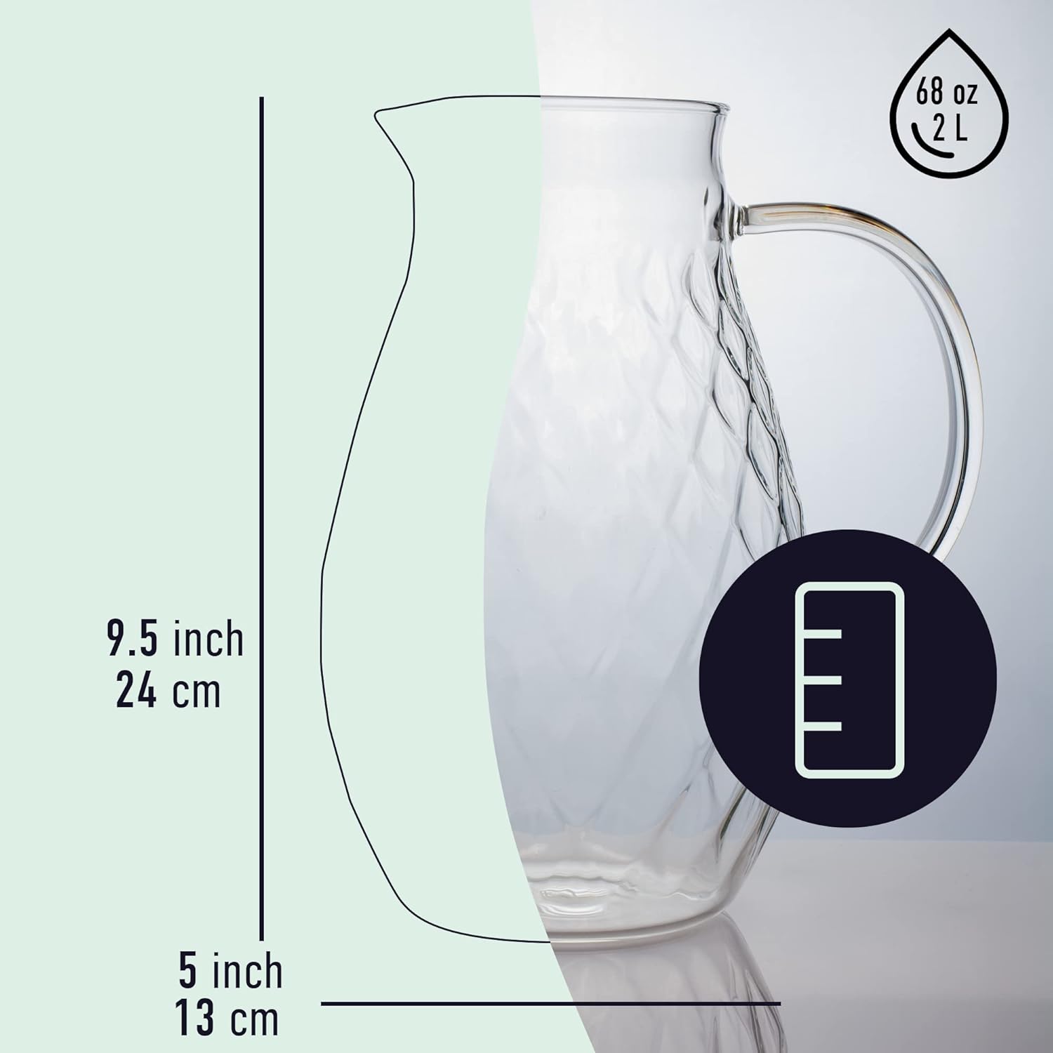 Glass Pitcher with Lid and Spout - 2 Liter / 68 oz, Borosilicate Glass w/Handle - Carafe for Hot/Cold Beverages - Water Jug - Iced Tea Pitcher - Juice Server - by PJC-Kitchen