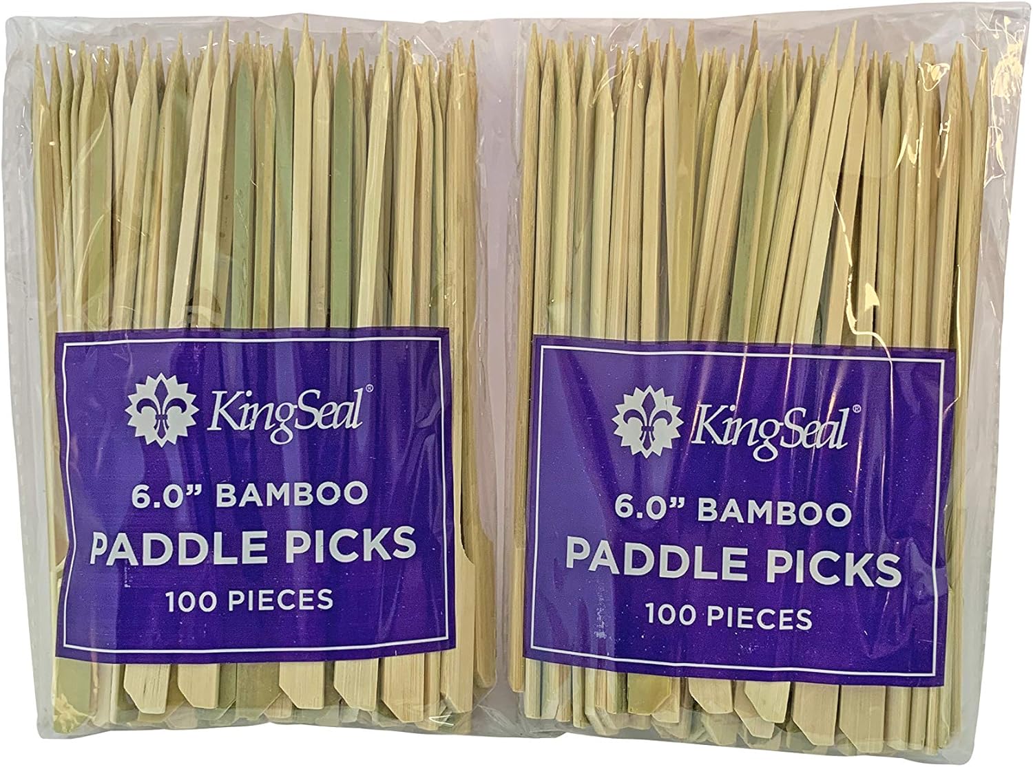 200 Count | KingSeal Natural Green Bamboo Wood Paddle Picks, Skewers for Appetizers and Cocktails, 6.0 Inches - 2 Packs of 100