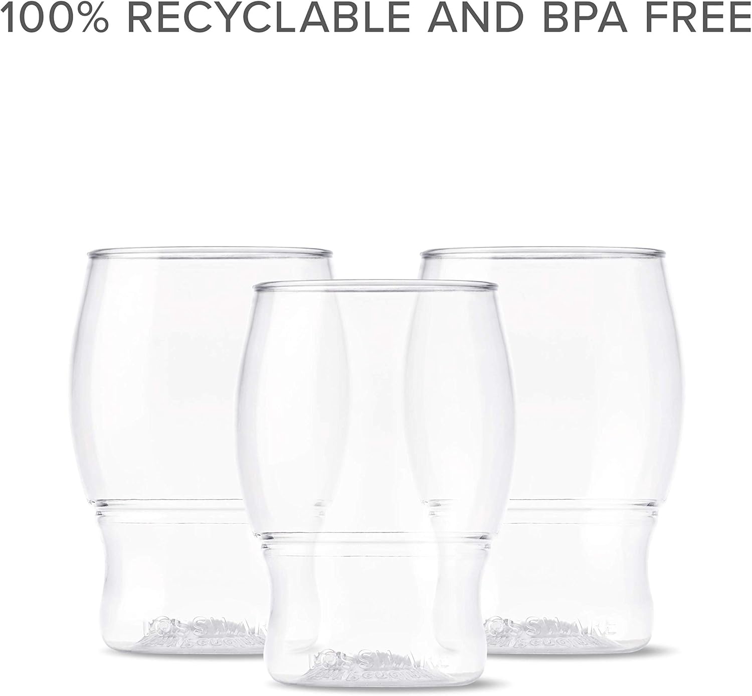 - Each glass is made from up to 1 recycled plastic bottle and is 100% BPA-Free.