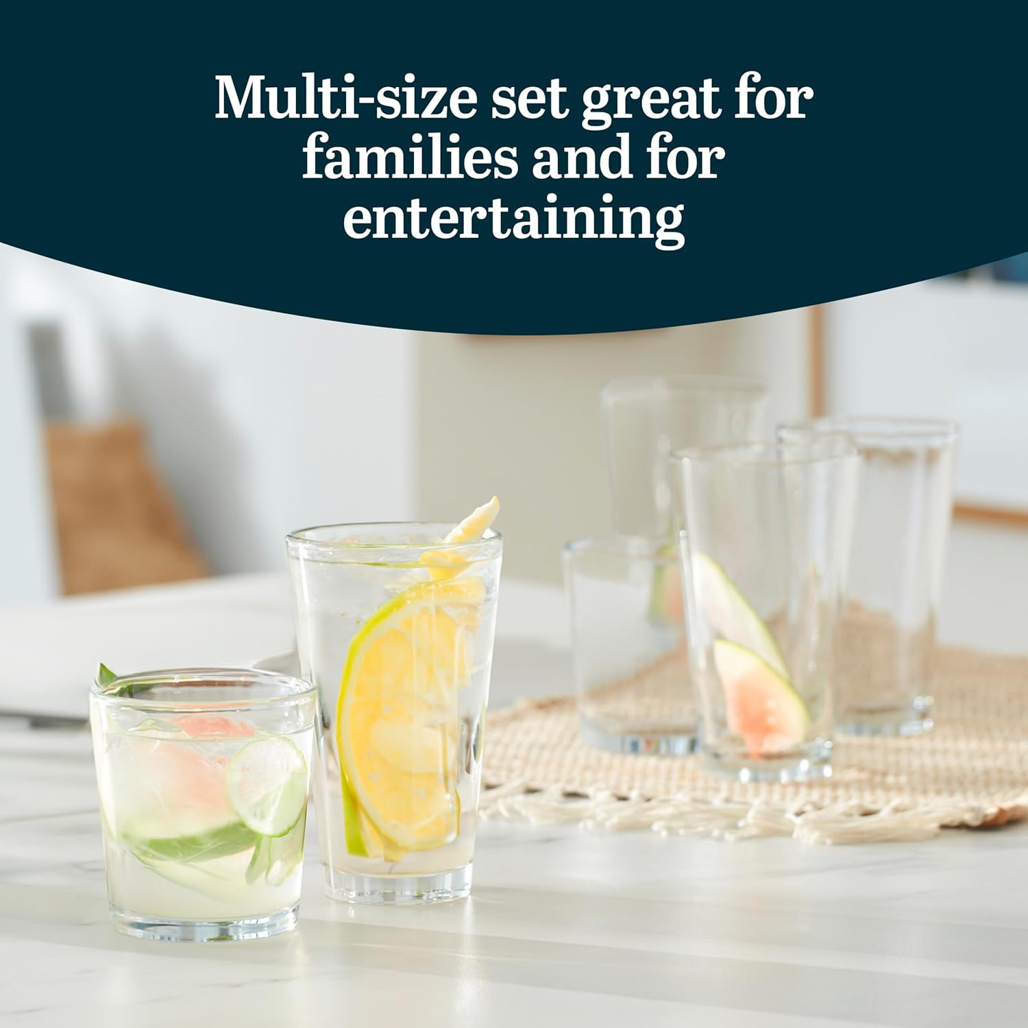 - Durable and Stylish: Our stylish glass cups set is perfect for those starting a kitchen glassware sets collection or adding to an existing collection; this 16 piece durable, modern drinking glasses set is long lasting and offers great value