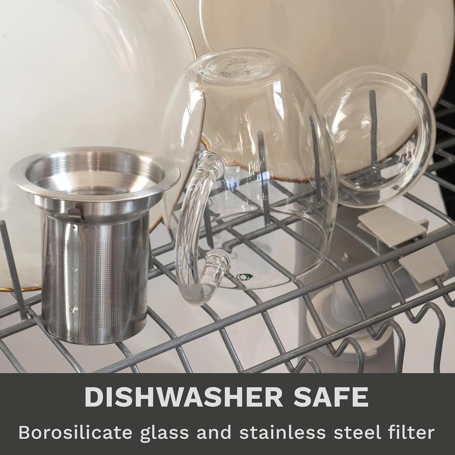 - OFFER: 1x 14oz tea glass with handle, stainless steel filter and lid made of clear high quality borosilicate glass, which keeps hot drinks warm a little longer. The all-in-one tea glass is made for the enjoyment of high quality tea of all kinds like loose tea, fruit tea, green tea, black tea and tea bags. Delivered in a high-quality gift box.