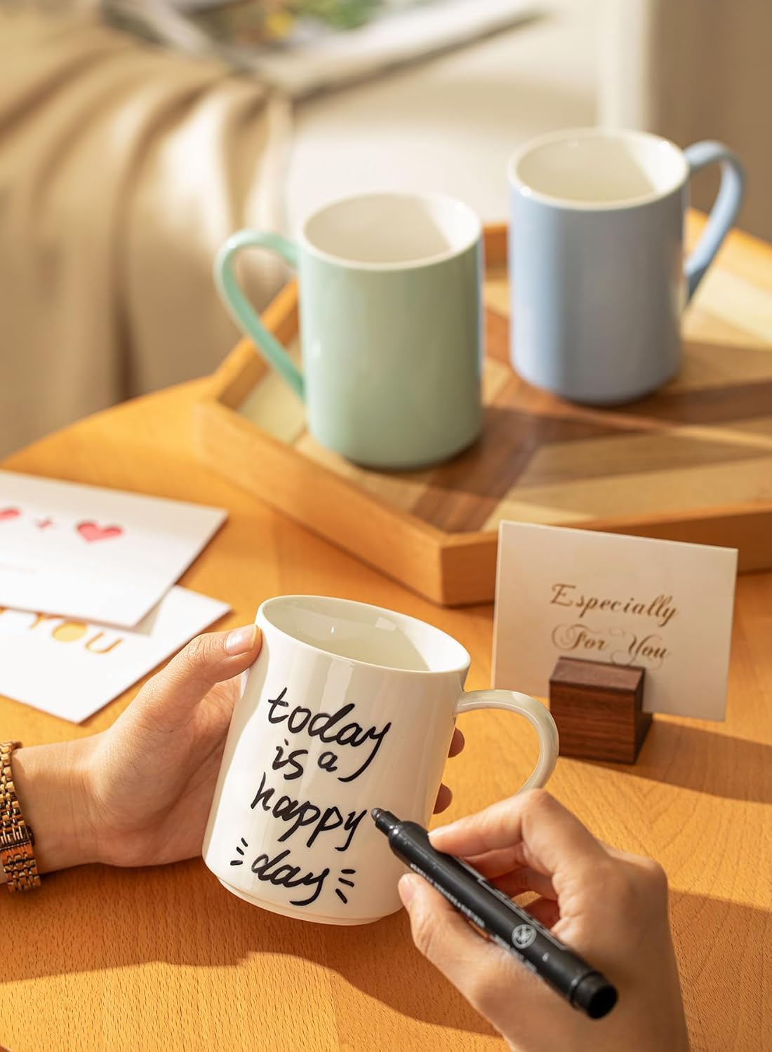 - MULTI PURPOSES: The size is great for a cup of coffee/tea/milk/chocolate with something added. Also can handle everything from a large cup of Keurig coffee to oatmeal, protein shakes, and soup. You can paint with permanent paints on them so you can get your own mug.