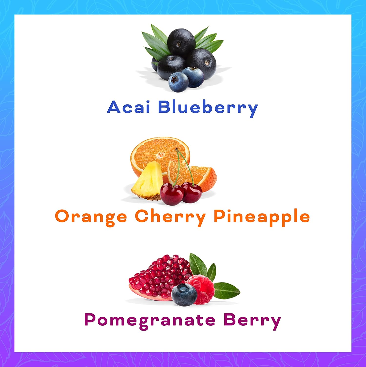 - BOLD DELICIOUS FLAVOR - Our 12-pack Performance Pack features an assortment of our most popular flavors, including Acai Blueberry, Orange Cherry Pineapple, and Pomegranate Berry. All are sugar free, calorie free, non-GMO & have no artificial sweeteners – unsweetened with just the right amount of flavor.