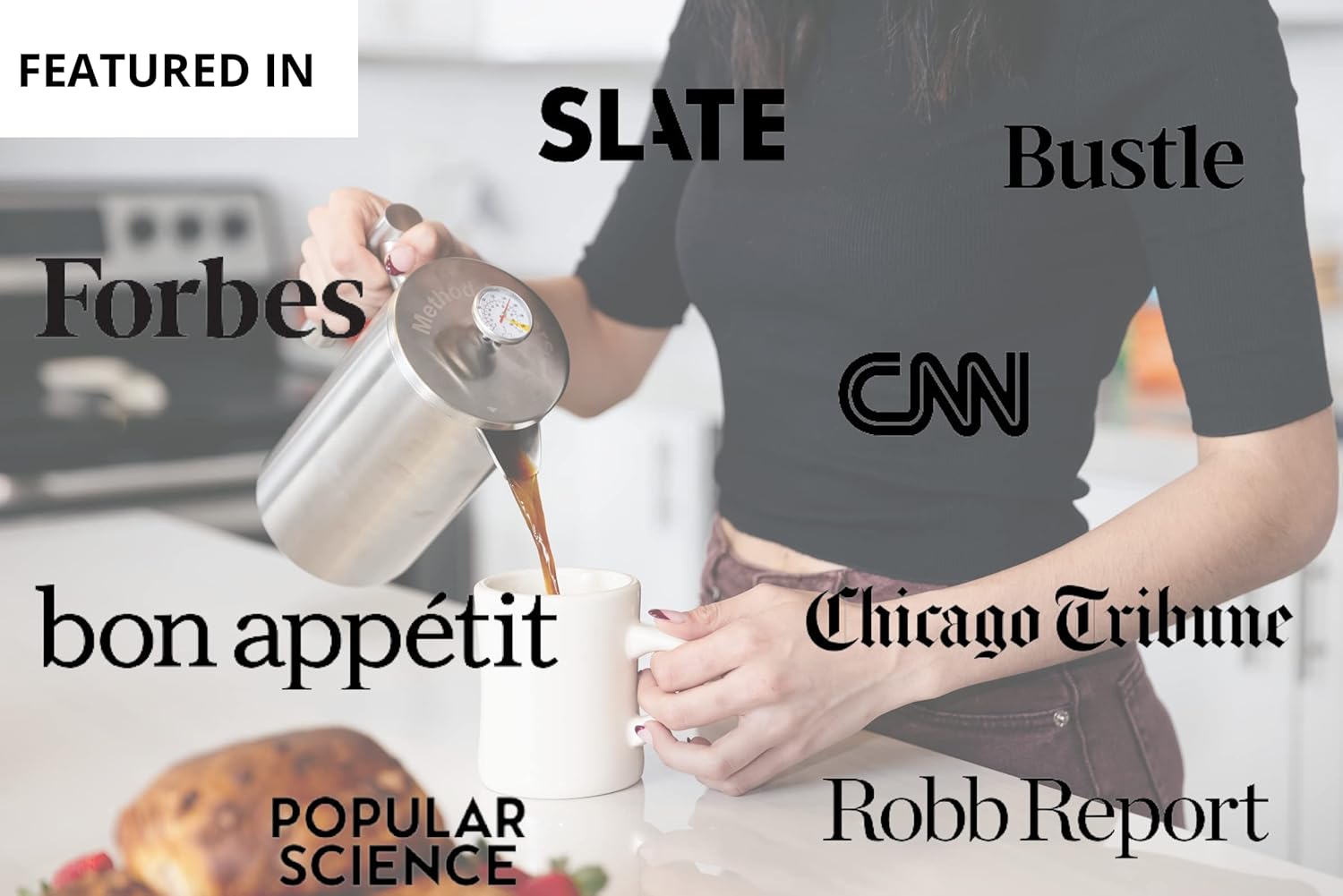 - BUILT-IN THERMOMETER: It provides a perfect temperature. Water that is too hot will burn your coffee. If it is too cold, you wonāt extract the full consistency of the beans. Our french press comes with an auto temperature gauge which allows you to brew your pour over coffee at the optimal temperature (195-205°F). Make a perfect cup of coffee every time with our easy to read coffee thermometer!