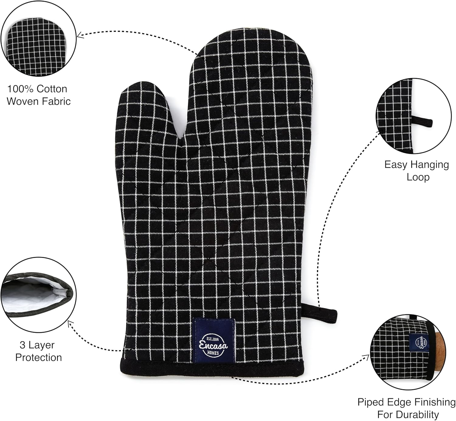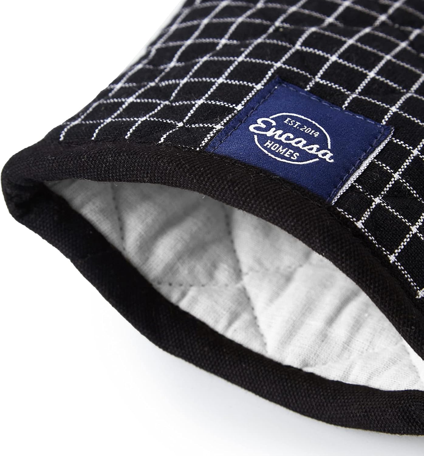 Encasa Homes Long 12" Oven Microwave Hand Gloves Mitts (2 pc Set) for Kitchen Cooking & Baking - Heat Resistant, Thick & Safe, Protection of Hands from Hot Utensils - Butcher Checks Black