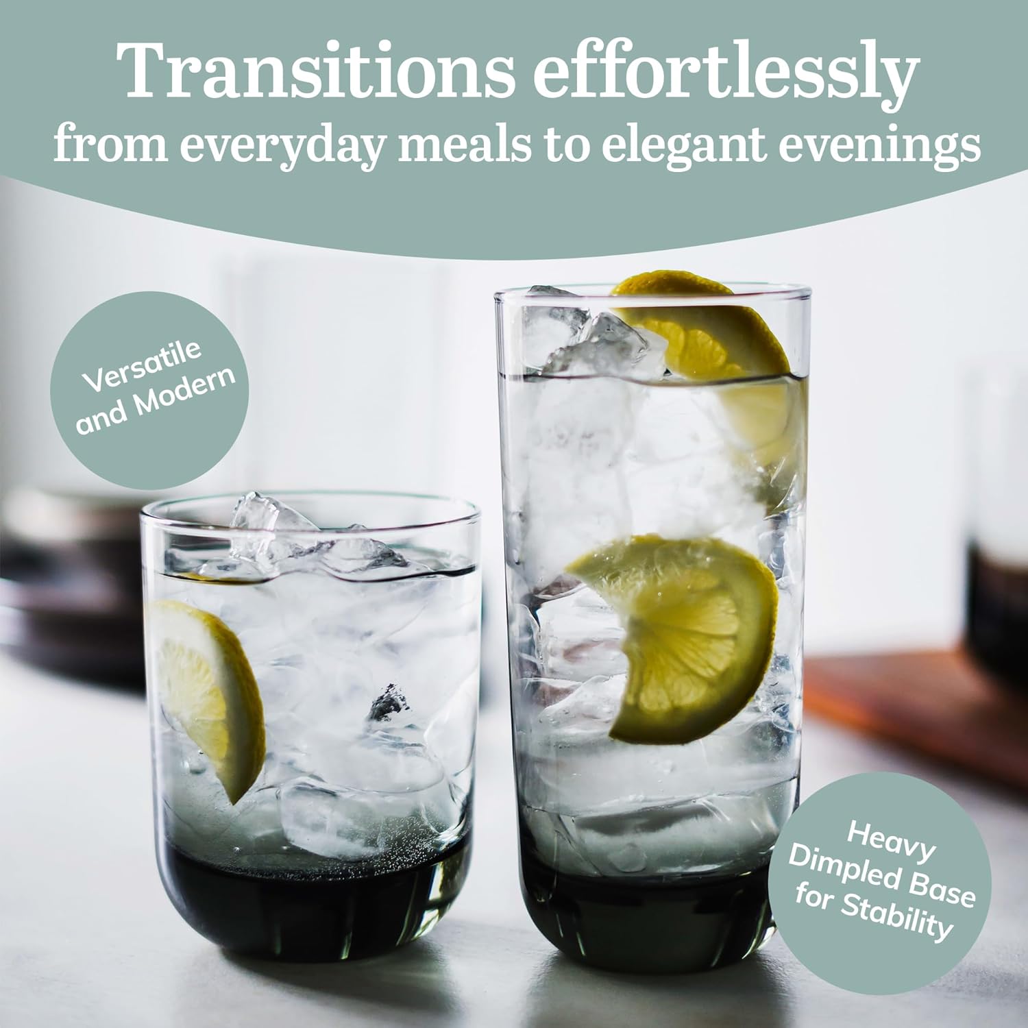 Libbey Polaris Tumbler and Rocks Glass Set, Smoke Hue Drinkware Glasses Set, Lead-Free Tall Water Glasses with Modern Clean Lines, Dishwasher Safe Drinking Glasses Set of 16