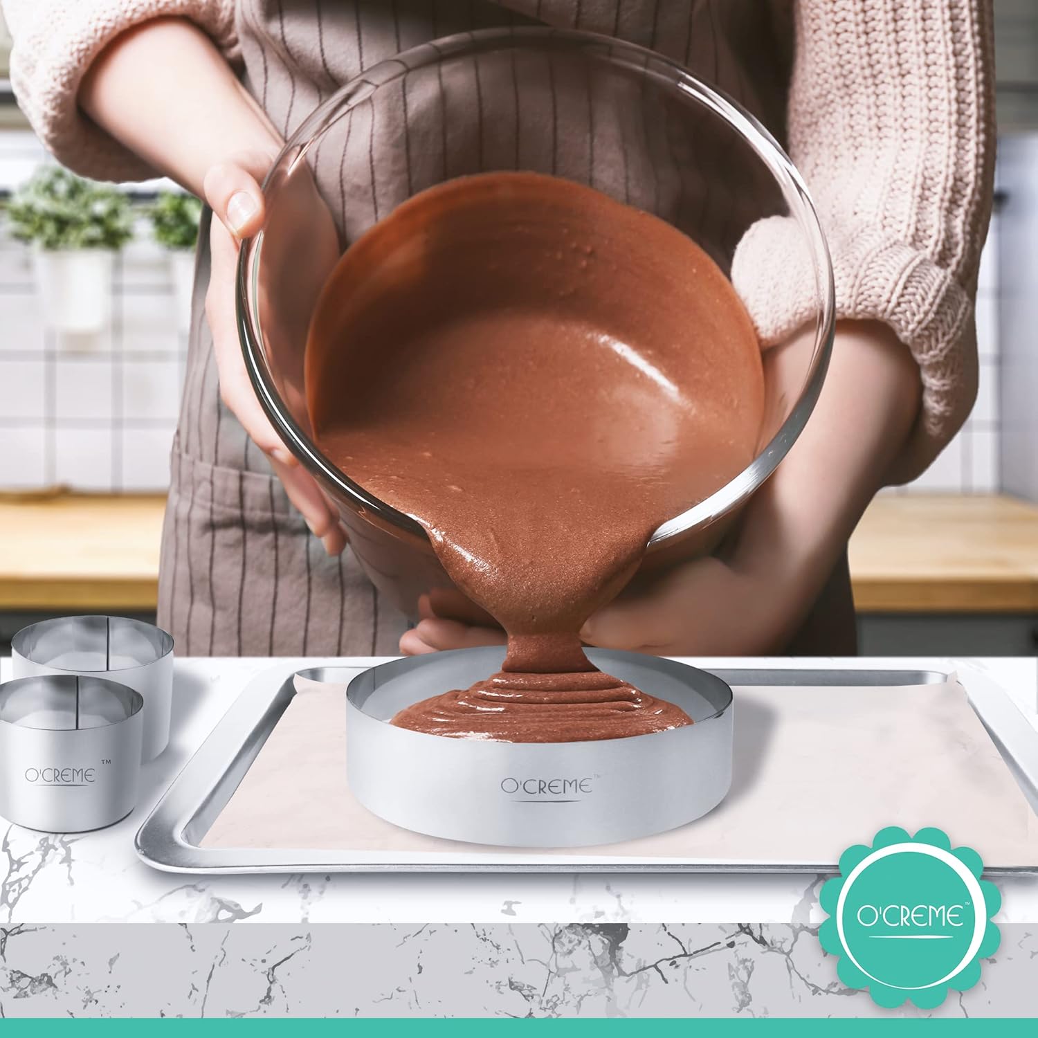 - Create Tiered Masterpieces with Multiple Sizes – Build beautiful multi-tiered cakes with the various sizes of O’Creme ring molds for baking. The stackable, uniform design makes it easier than ever to level up your creations and impress at any event. Perfect for preparing chilled mousse layers, baked sponge, or frozen ice cream cake molds.