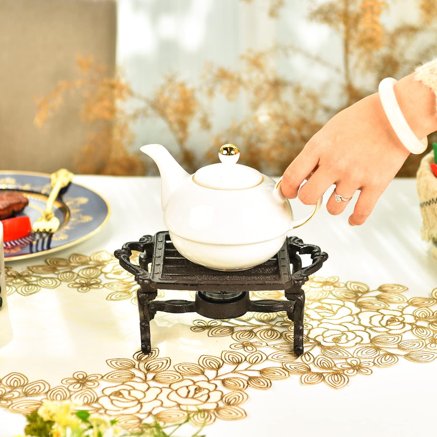 Sungmor Heavy Duty Cast Iron Teapot Dish Warmer Stable Holder for Tealight Stand | Tealight Warmer Decorative Stove for Villa Yard Balcony-Square