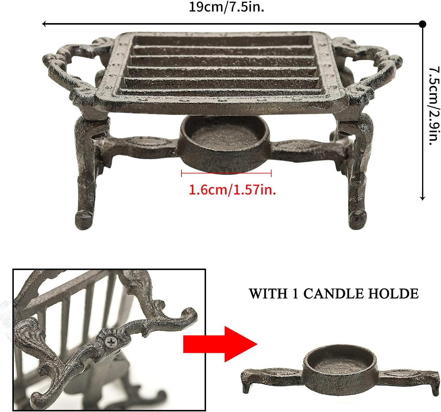 - Dimension:19.2*12.5*7cm/7.56*4.92*2.75 inch. Package only includes 1pc tealight warmer.