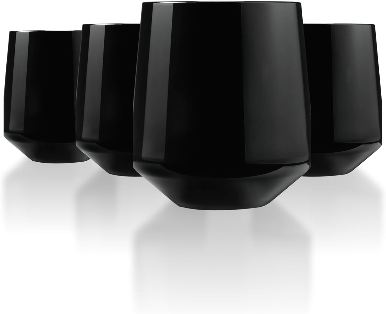 Drinique Unbreakable Stemless Wine Glasses (Set of 4) 12oz Tritan Plastic Stemless Glassware for Indoor or Outdoor Use - Black