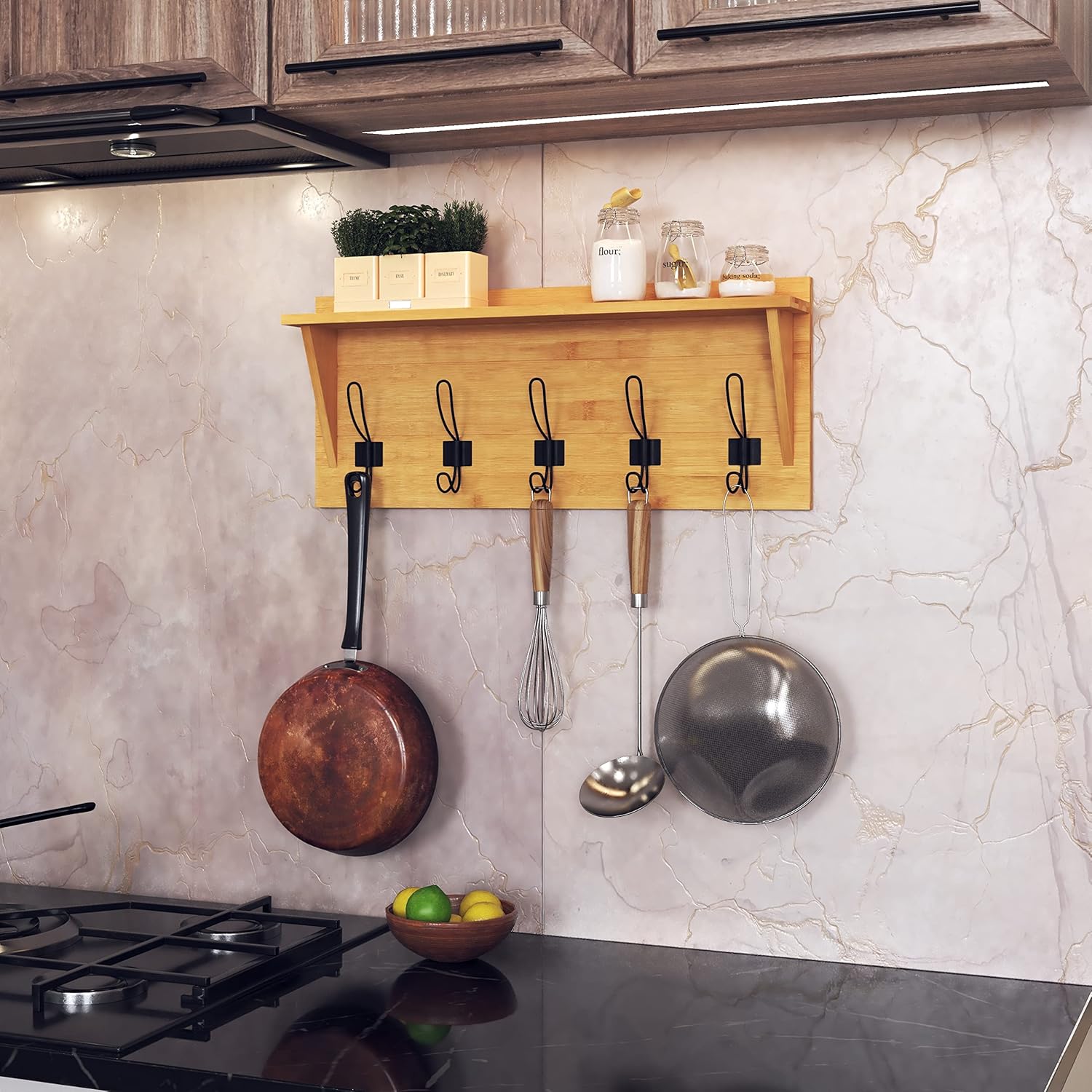 HBCY Creations Rustic Wall Mounted Coat Rack with Shelf - Solid Wood 24" Entryway Shelf with 5 Coat Hangers. Perfect Touch for Your Entryway, Mudroom, Kitchen, Bathroom and More, Bamboo