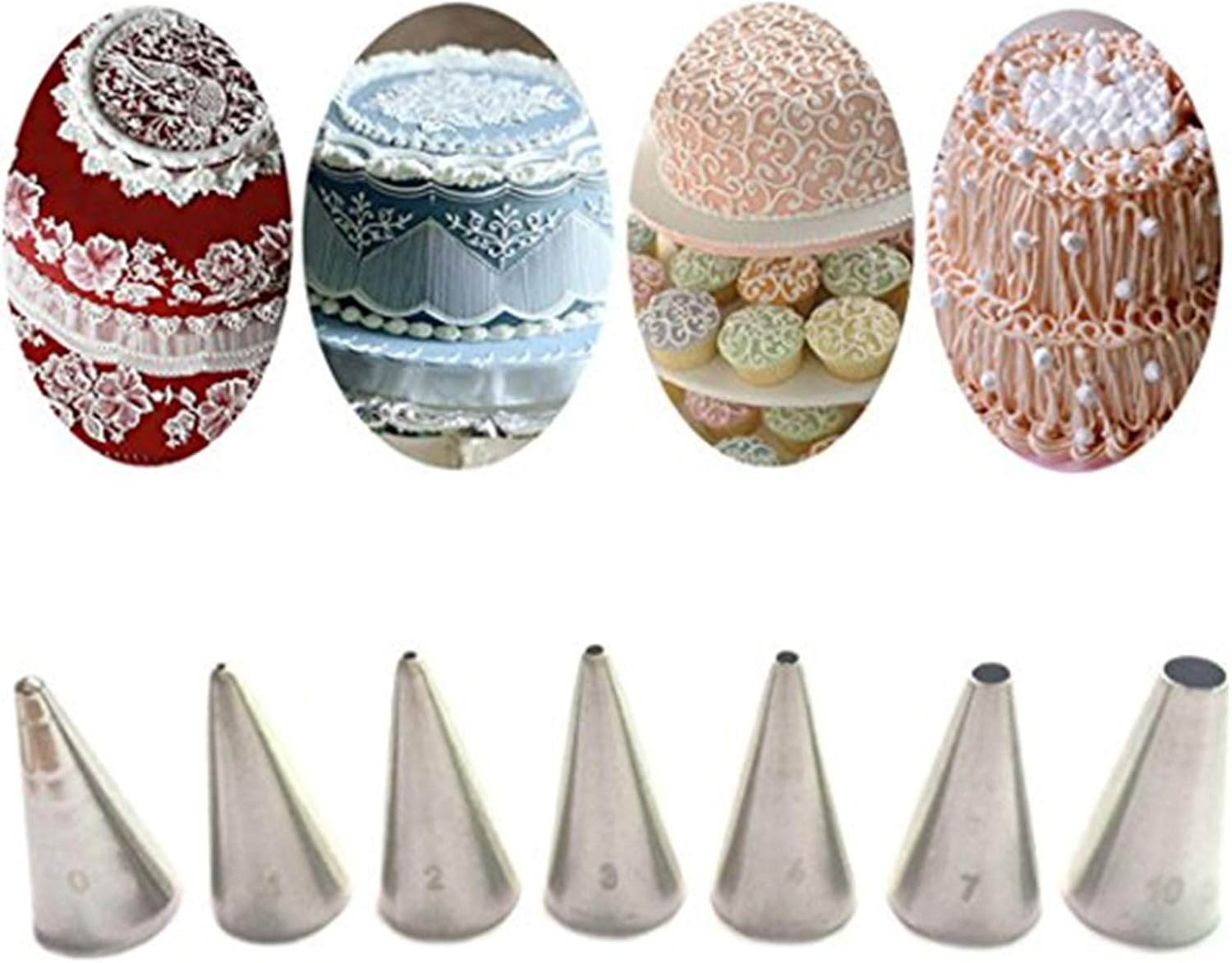 - Various creativity: With a set of different pattern cake tips which you can create all types of beautiful patterns on cake, cupcakes, pie and biscuit. Put your artistry to great use and give your cakes spectacular decorative touches with this set of cake decorating tips!