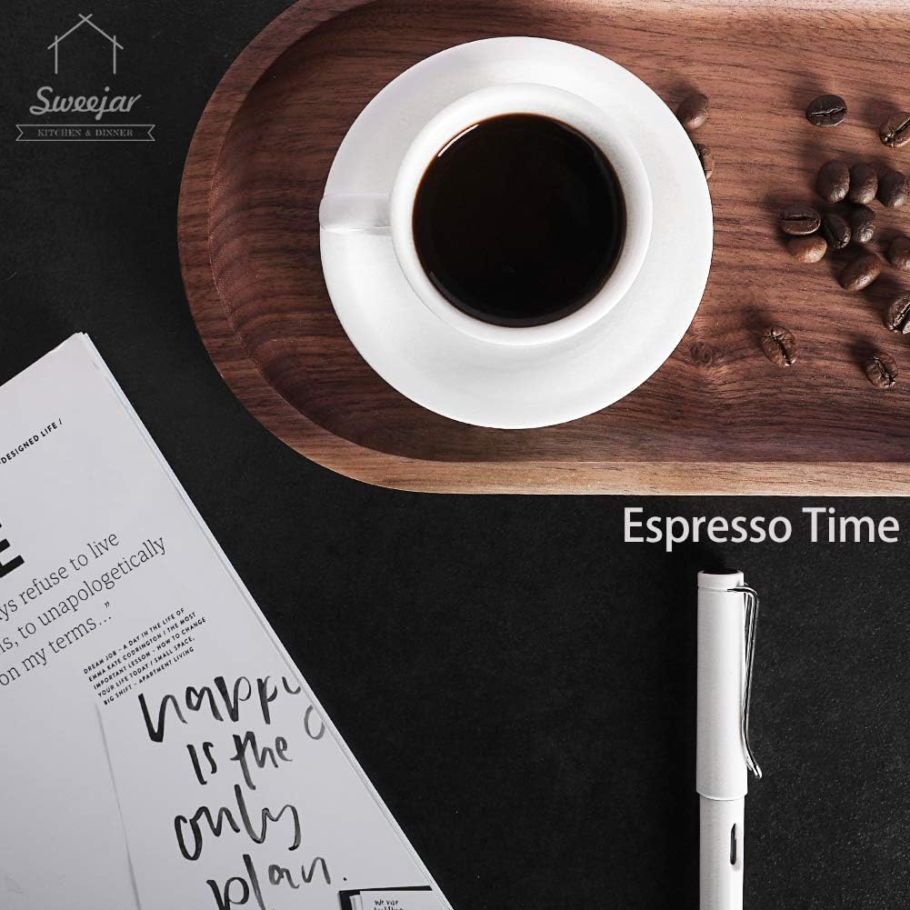 Sweejar Porcelain Espresso Cup & Saucer Set, Stackable Demitasse Cups with Metal Stand, 2.5 OZ for Latte,Coffee,Cafe Mocha,Tea, Set of 6(White)