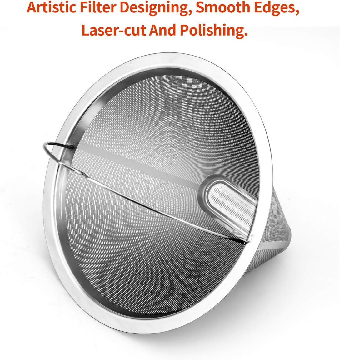 - ★ 【Serves You The Superior Taste Coffee Reusable Coffee Filters 4】: Upgrade stainless steel reusable cone coffer filter, makes you healthier and it is durable for years, no plastic and other material,