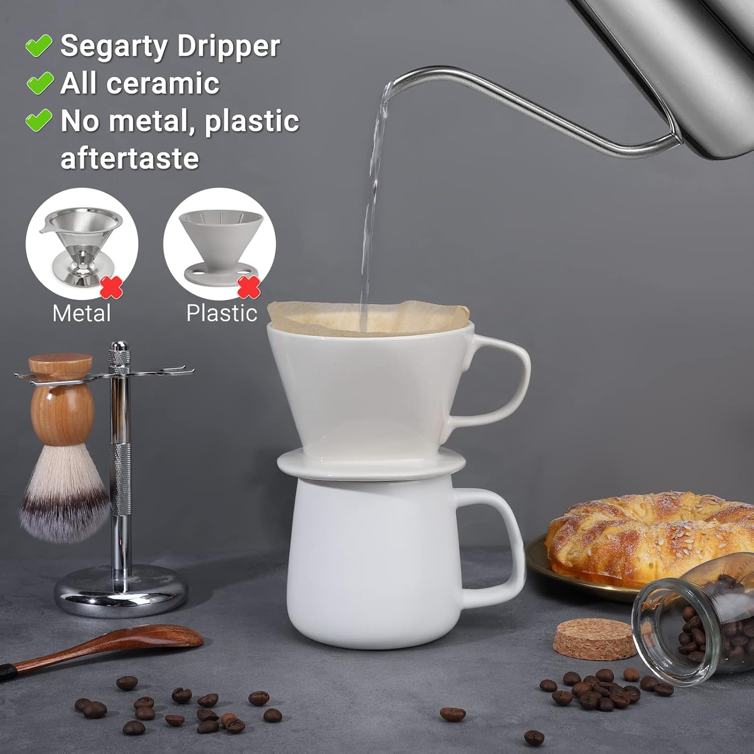 - Sturdy Attractive Ceramic Coffee Filter Cup --- With a well-balanced design, the Segarty Coffee Filter Cup #2 model is more tapered at the edges, centralizing the dripper's weight, making it more stable, while many other ceramic pour-over coffee drippers are bulky, as a result they slip, spilling a horrible mess quite easily.