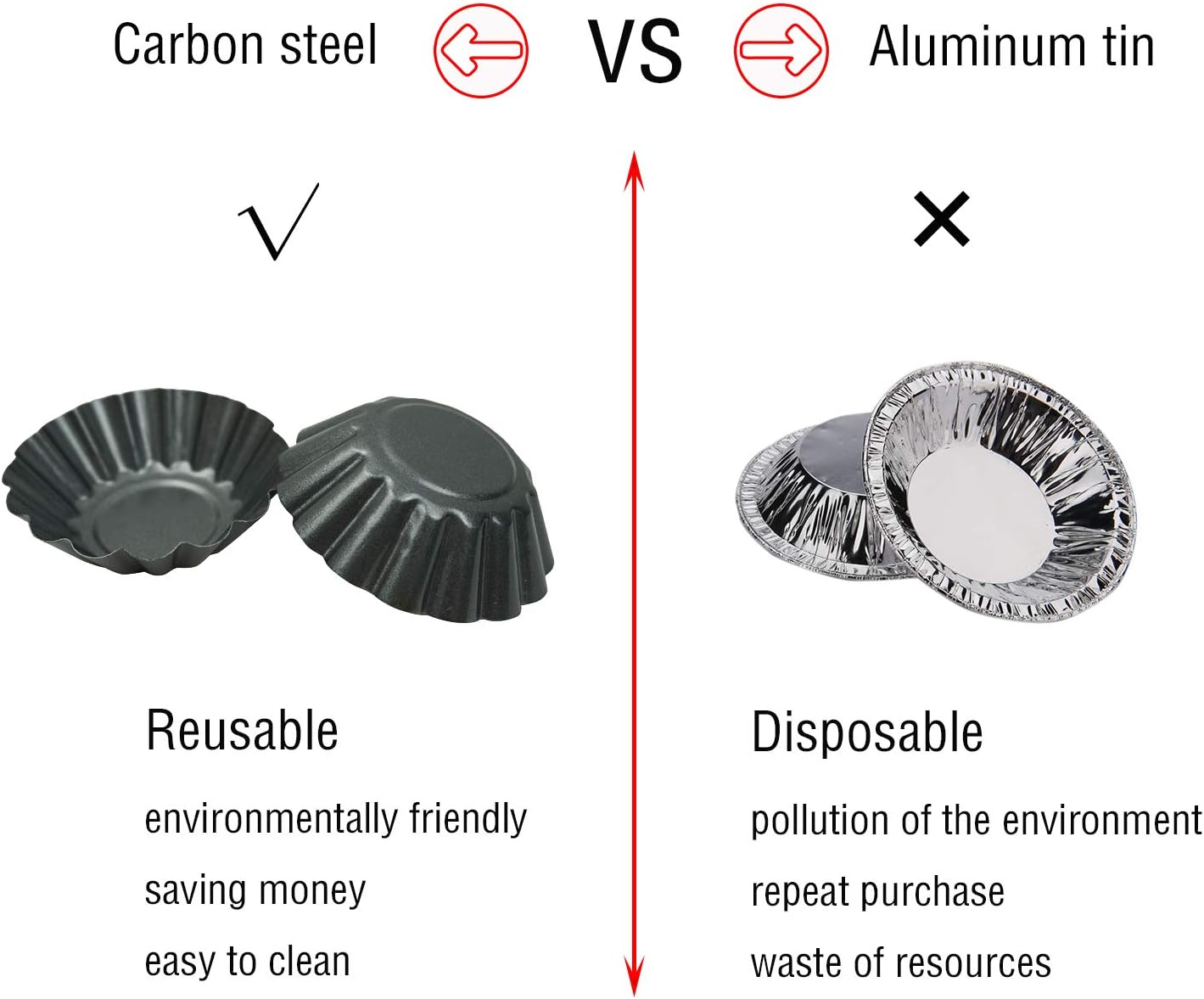 - Reusable and high temperature resistant mini pie tins- carbon steel material, better than disposable aluminum, can be reusable; temperature resistant up to 446℉, useful for oven