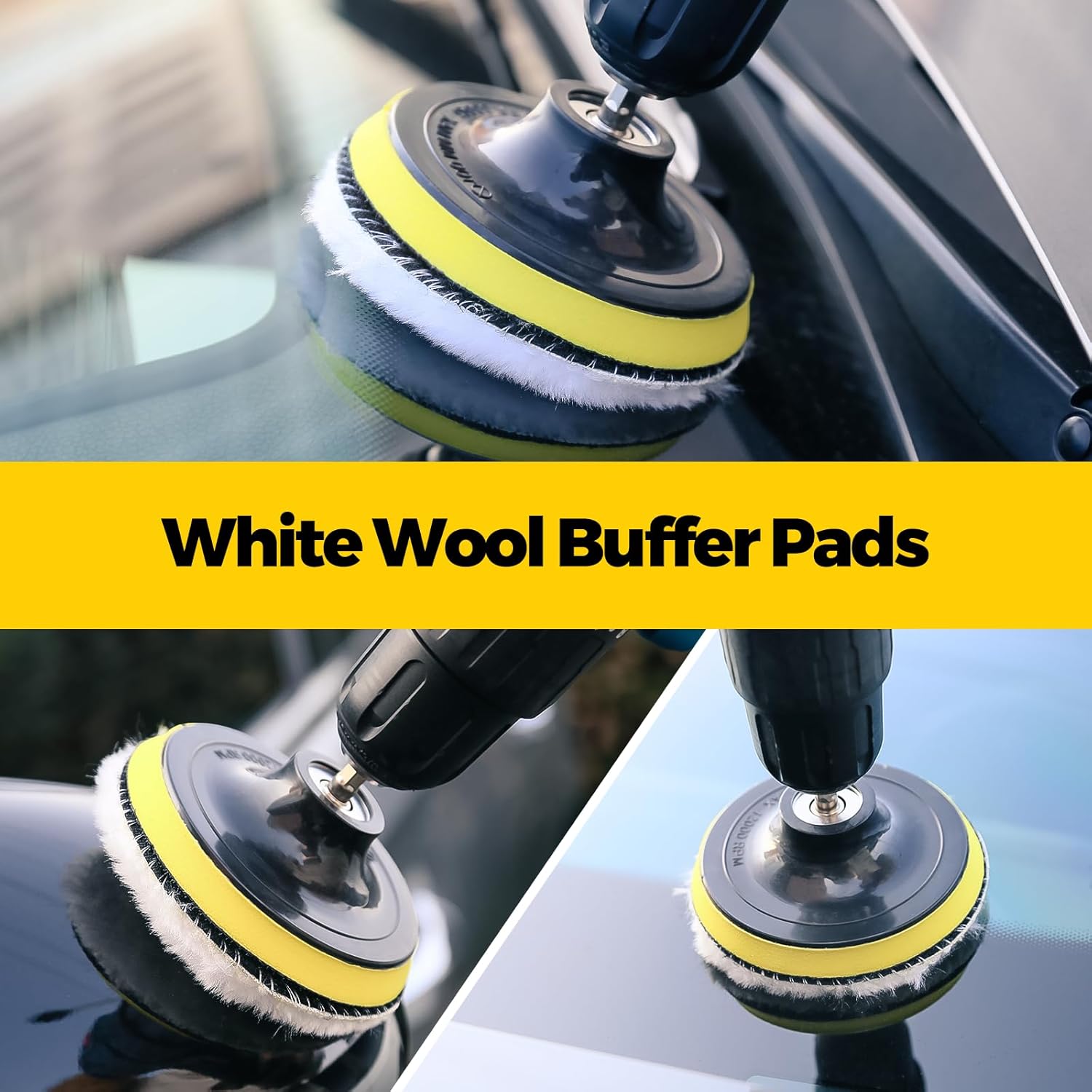 - Professional wool and foam pad buffing, polishing and finishing system. Efficient cutting and polishing the most difficult car oxidation coating, scratches (DRILL IS NOT INCLUDED)