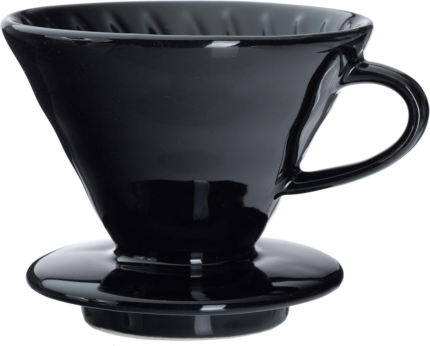 Pour Over Coffee Dripper - Ceramic Slow Brewing Accessories for Home, Cafe, Restaurants - Easy Manual Brew Maker Gift - Strong Flavor Brewer - V01 Paper Cone Filters - Black, 1 Cup