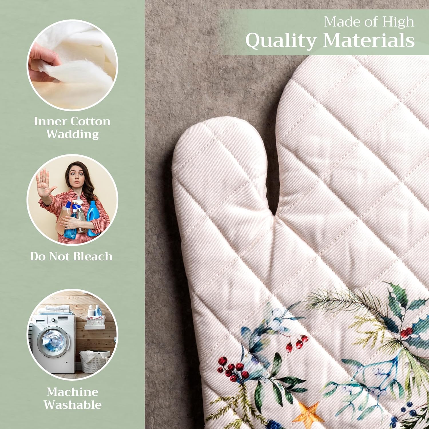 - 100% Quilted cotton: Crafted from thick, durable quilted cotton, this heat resistant oven mitt provides a soft feel, safe handling, and lasting performance. A must-have kitchen accessory for everyday cooking, roasting, or baking tasks