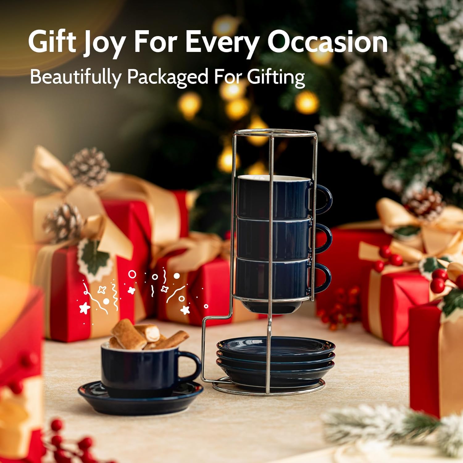 - REDEFINING CONVENIENCE IN EVERY CORNER: Transform your living space with Space-Saving & No Mess perfection. Our innovative stacking rack design keeps your cup set together, occupying just the space of one saucer. Say goodbye to clutter – even the tiniest nook becomes tidy with this compact solution, ensuring your coffee corner remains pristine and mess-free. Enjoy the simplicity of organized living.