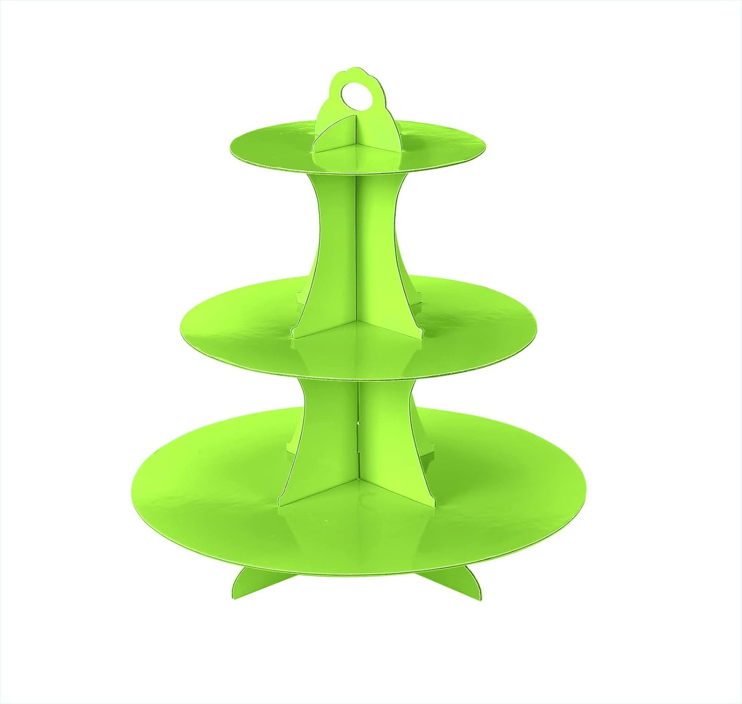 3-Tier Cupcake Stand, Cake Stand holder, Tiered DIY Cupcake Stand Tower for Dessert Table Displays, Birthday Theme Party Favors Decoration, Floral Tea Party, 12" W x 12.8" H, Green