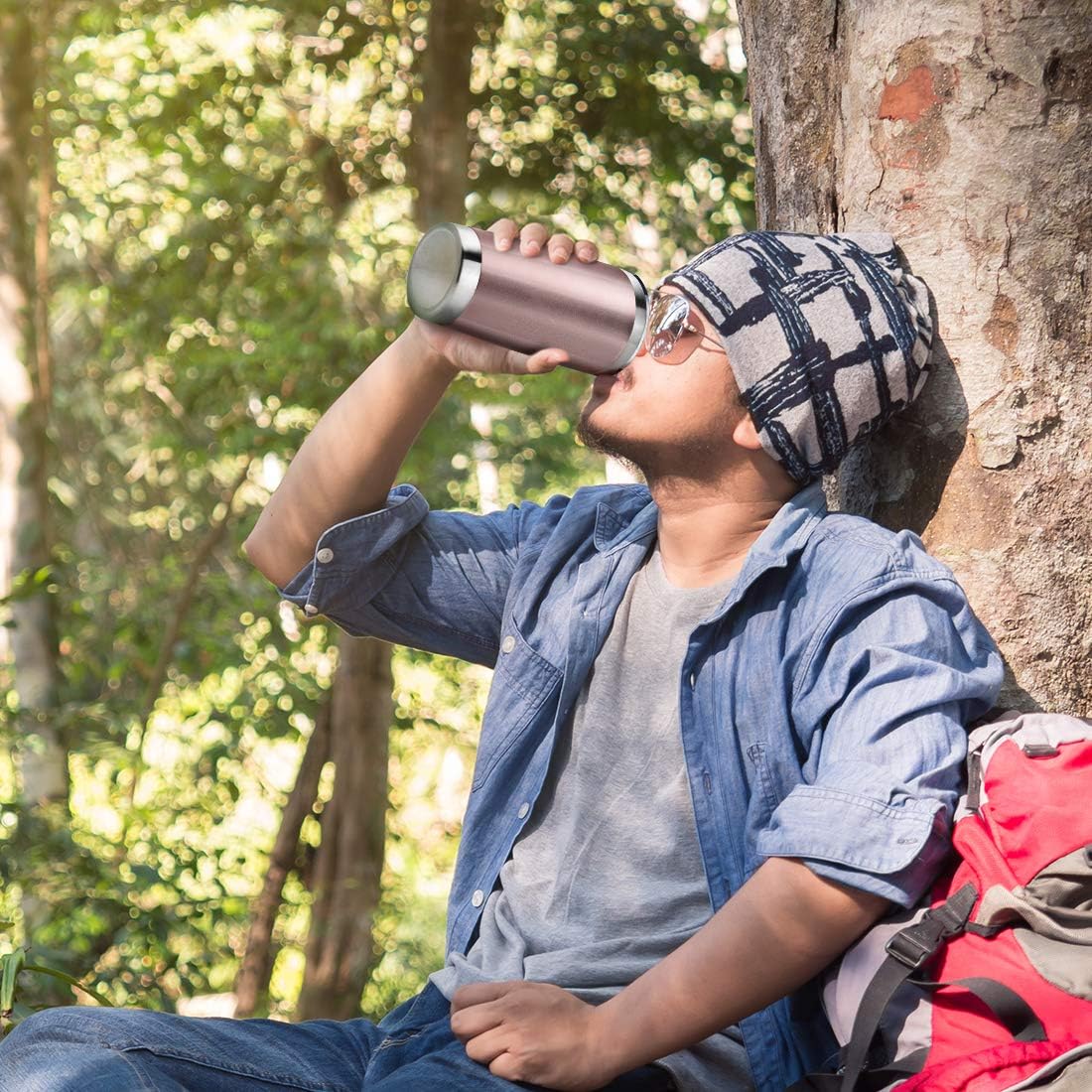 - DOUBLE WALLED and VACUUM INSULATED:Thanks to the double wall vacuum insulated design, A full cup of nice warm, hot coffee will never boil your hand. Keep drinks cold for up to 9hours and hot drinks hot for up to 3hours. Note drink hole on the top for easy sipping