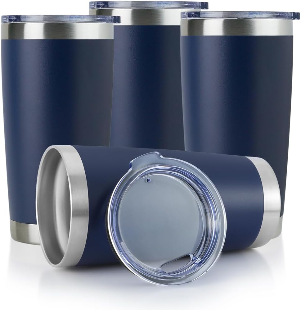 DOMICARE 20oz Stainless Steel Tumbler Bulk with Lid, Double Wall Vacuum Insulated Travel Mug, Powder Coated Coffee Cup (Powder Navy, 4)