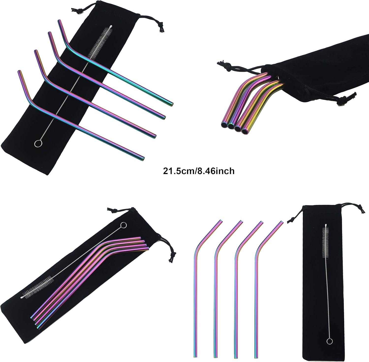 Gugrida Stainless Steel Straws 8.5" - 4 Pack - Multicolor - Eco-Friendly - Durable & Versatile - Easy to Clean - Portable Idea