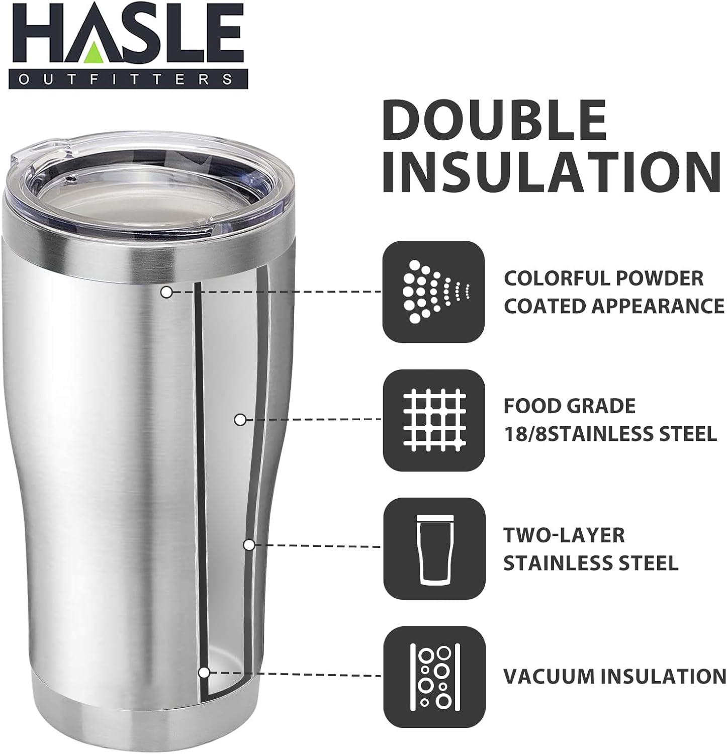 HASLE OUTFITTERS 20 oz Tumbler Bulk, Stainless Steel Tumblers with Lid, Vacuum Insulated Tumbler, Double Wall Tumbler Cup, coffee mugs, Stainless Steel, 12 Pack