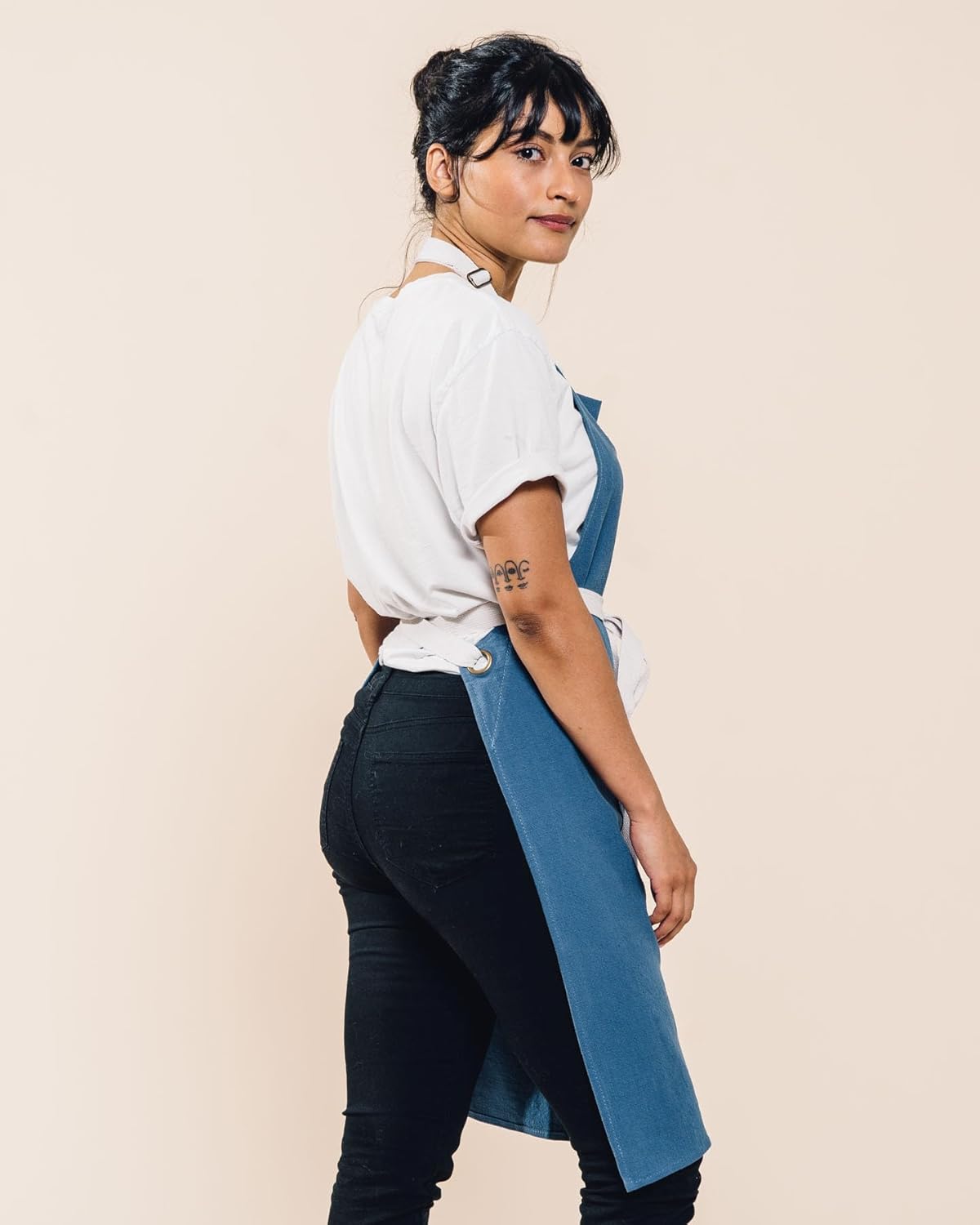 Caldo Linen Kitchen Apron for Cooking- Mens and Womens Linen Bib Apron for Professional Chef, Server, or Barista- Adjustable with Pockets (Vintage Blue)