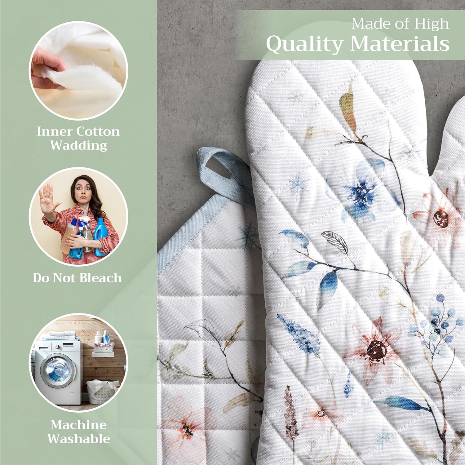 - Premium Quality: Crafted from quilted 100% cotton, this heat resistant oven mitt and pot holder set offers comfort, flexibility, and protection from hot cookware. Ideal cotton oven mitts for daily kitchen use and cooking safety