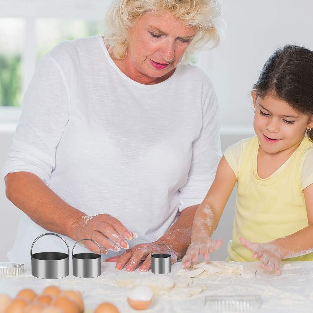 - Various sizes:The biscuit cutters include a set of 5 different sizes for your choice.sizes: Dia. 1 3/4, 2, 2 1/4, 2 3/4, 3 1/4 inch (4, 5, 6, 7, 8 cm), Height: 1 3/4 inch (4 cm).