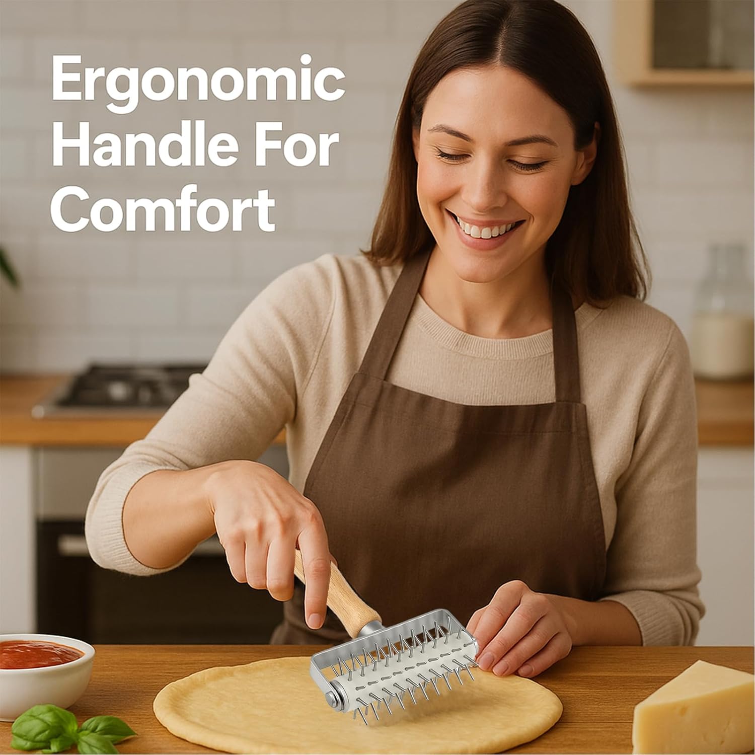 - Premium Material: Our dough docker roller with a solid wood handle. Pins are made of Food Grade stainless steel material. Sturdy and durable dough docker will last longer
