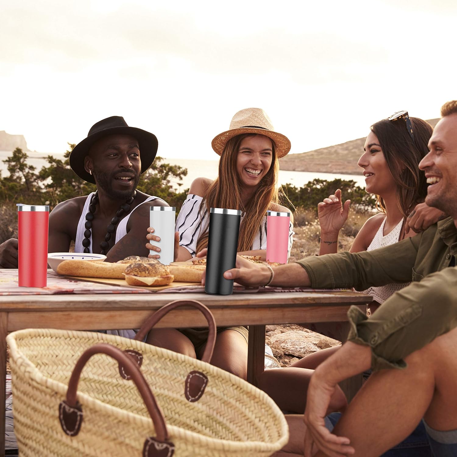 HASLE OUTFITTERS 20 oz Skinny Tumblers Bulk Set, Stainless Steel Insulated Slim Tumblers with Lids, Reusable Double Wall Travel Coffee Mugs, Durable Powder Coated Travel Water Cups (4)
