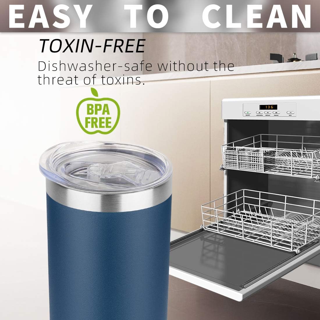 - LIFETIME DURABILITY:304 food grade stainless steel body, BPA free, healthier than plastic cup. The insulated tumbler never sweat due to the Vacuum insulated design. Powder coating on the outside fits more comfortably in your hand, looks good, anti-slip