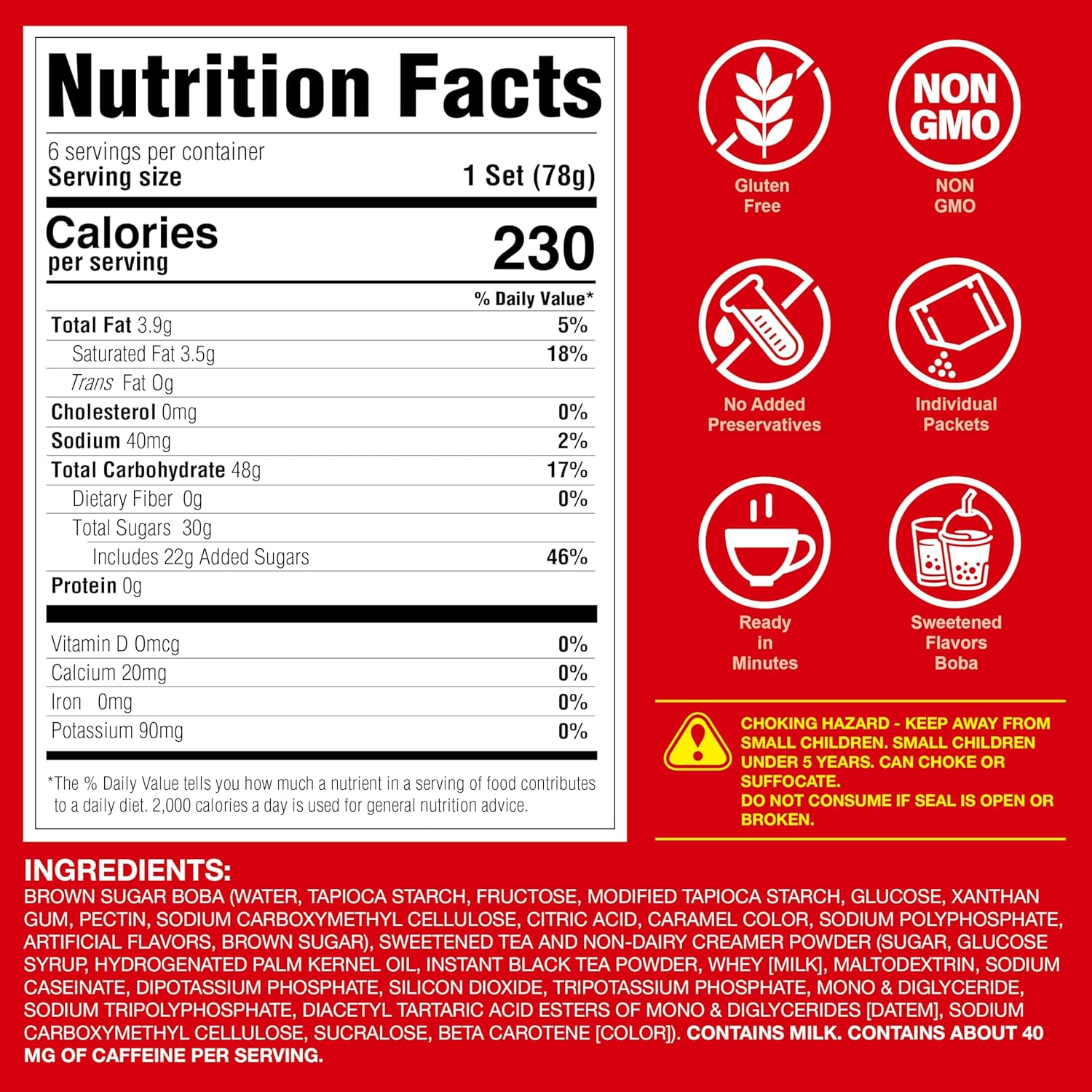 - WHAT IS INSIDE - 6 Individually wrapped portions of brown sugar flavored boba, 6 classic milk tea packets, & 6 extra wide paper straws. Store in a cool, dry place (no refrigeration necessary).
