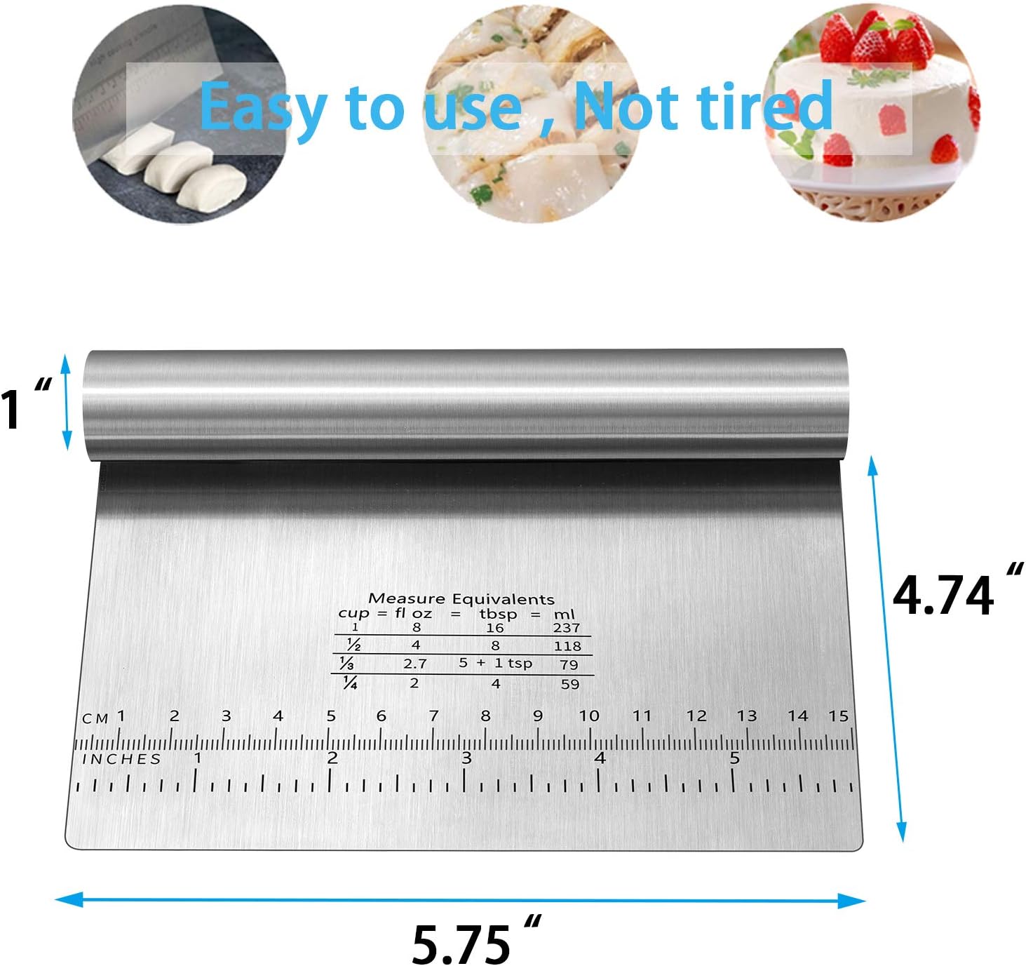 - 【Premium quality baking tools】You can use it as——Pro dough cutter /Pastry scraper / Pizza Cutter/Pastry bread separator scale knife.....Dimensions: 5.75" x 4.74" x 1 "!